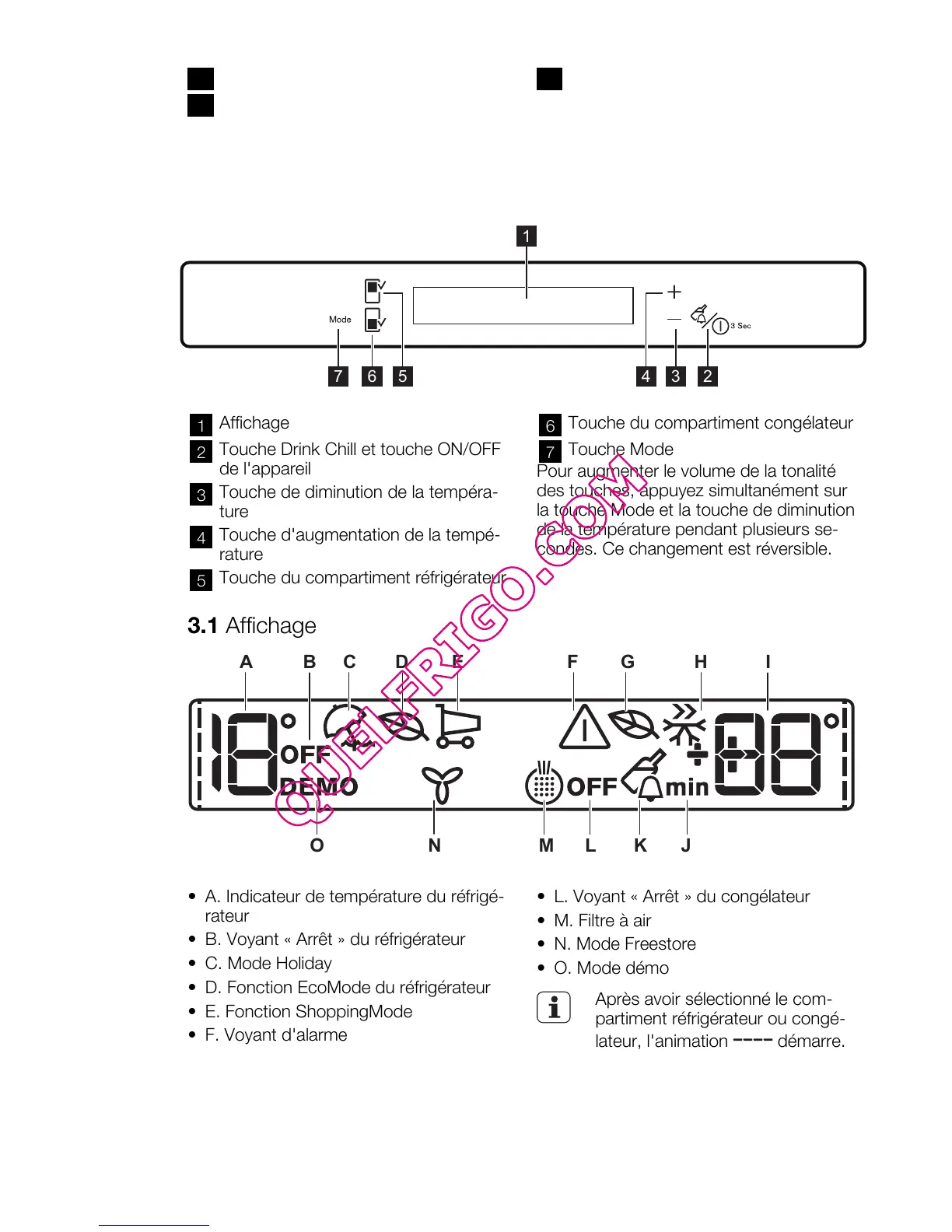 • L. Voyant « Arrêt » du congélateur