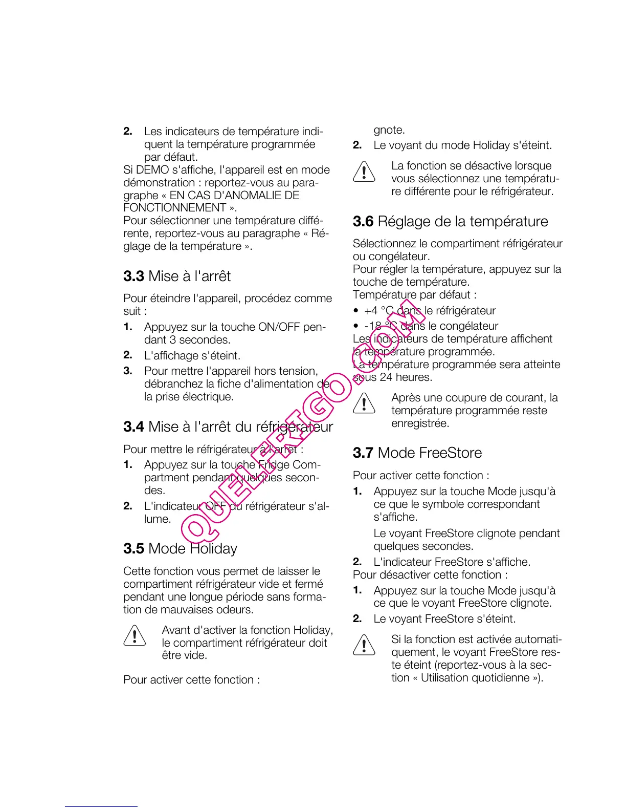 3.4 Mise à l'arrêt du réfrigérateur
