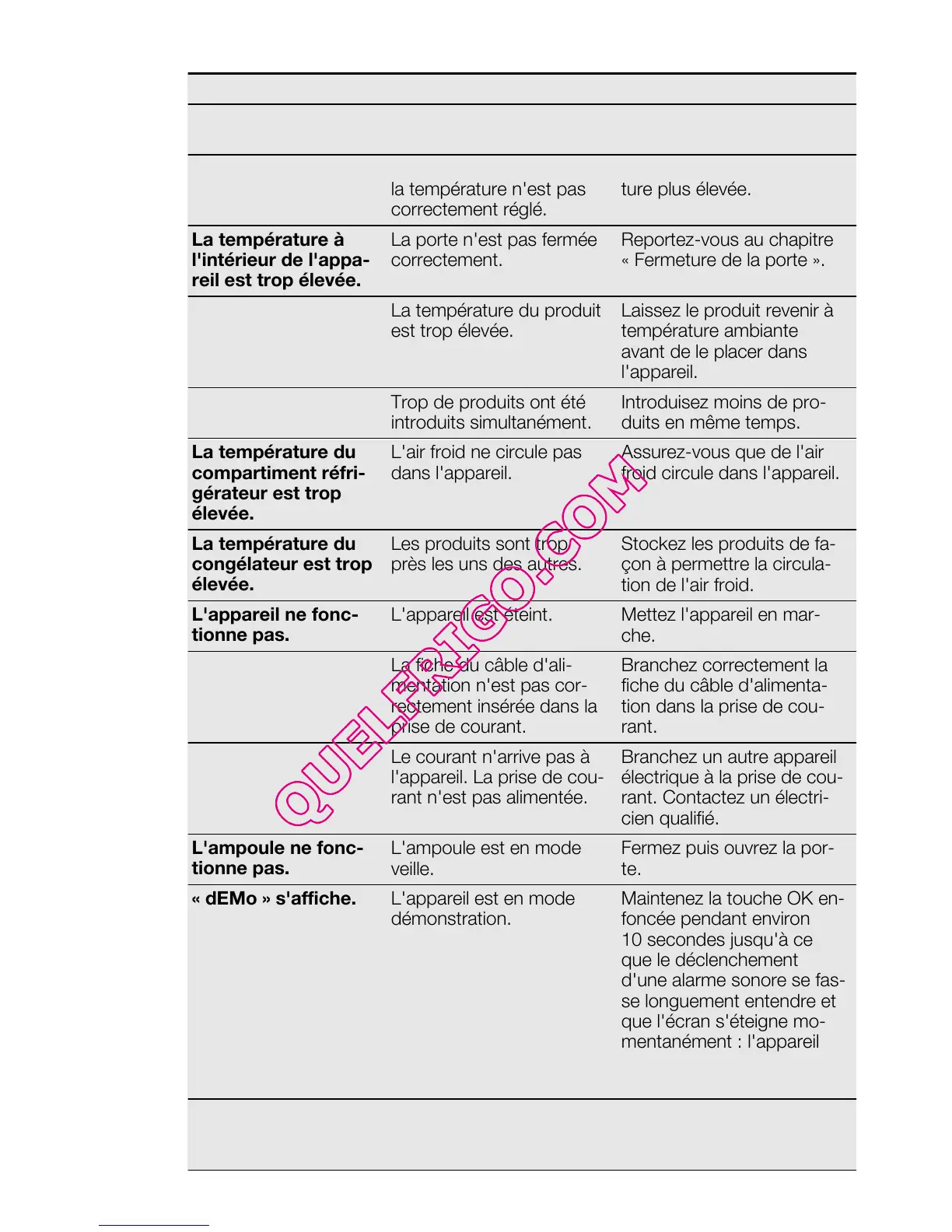congélateur est trop