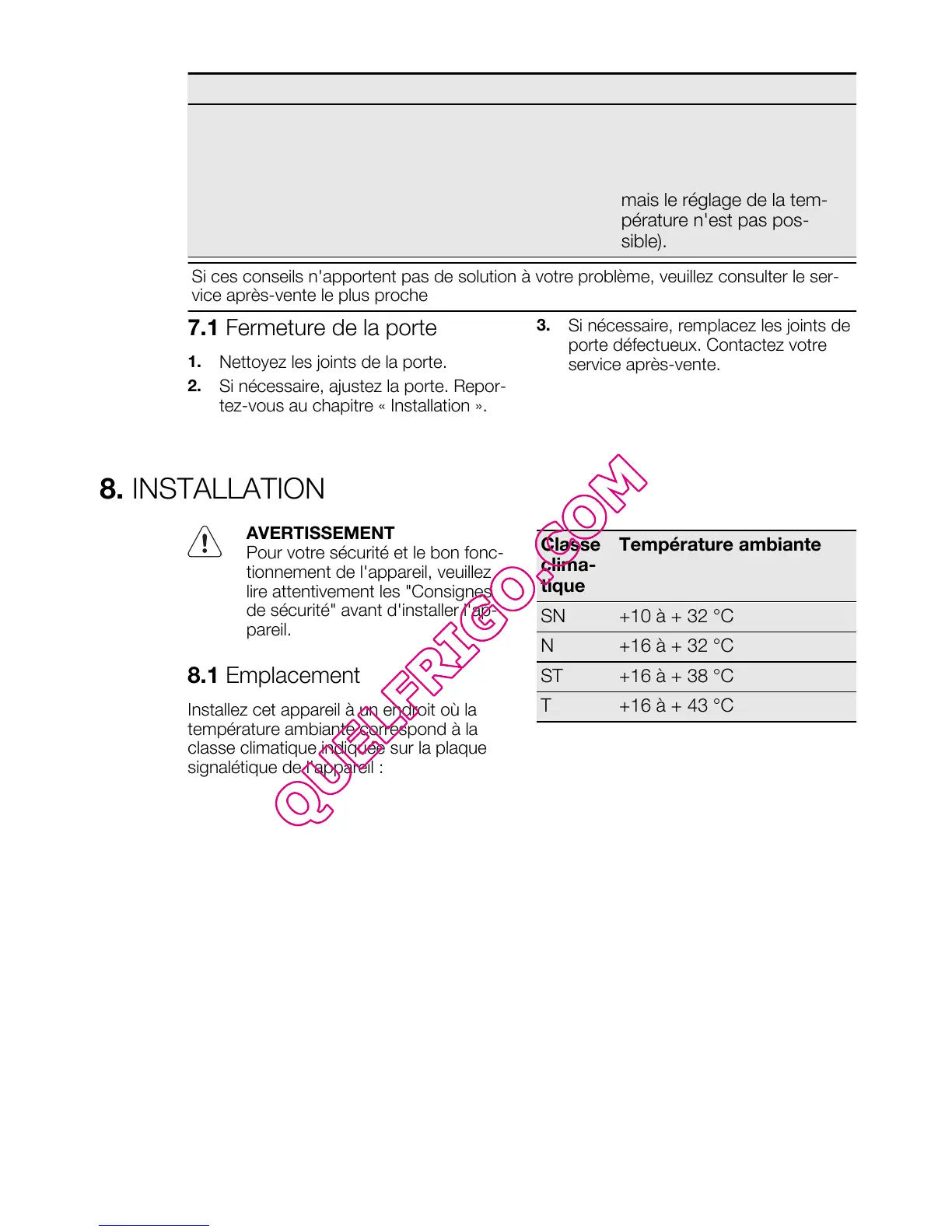 7.1 Fermeture de la porte