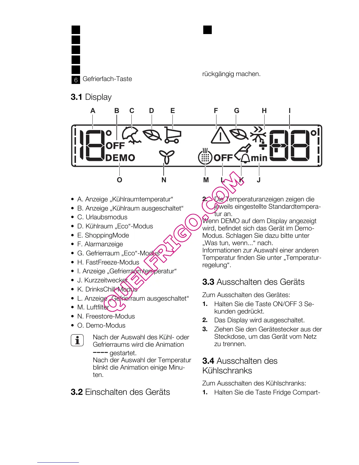 • L. Anzeige „Gefrierraum ausgeschaltet“