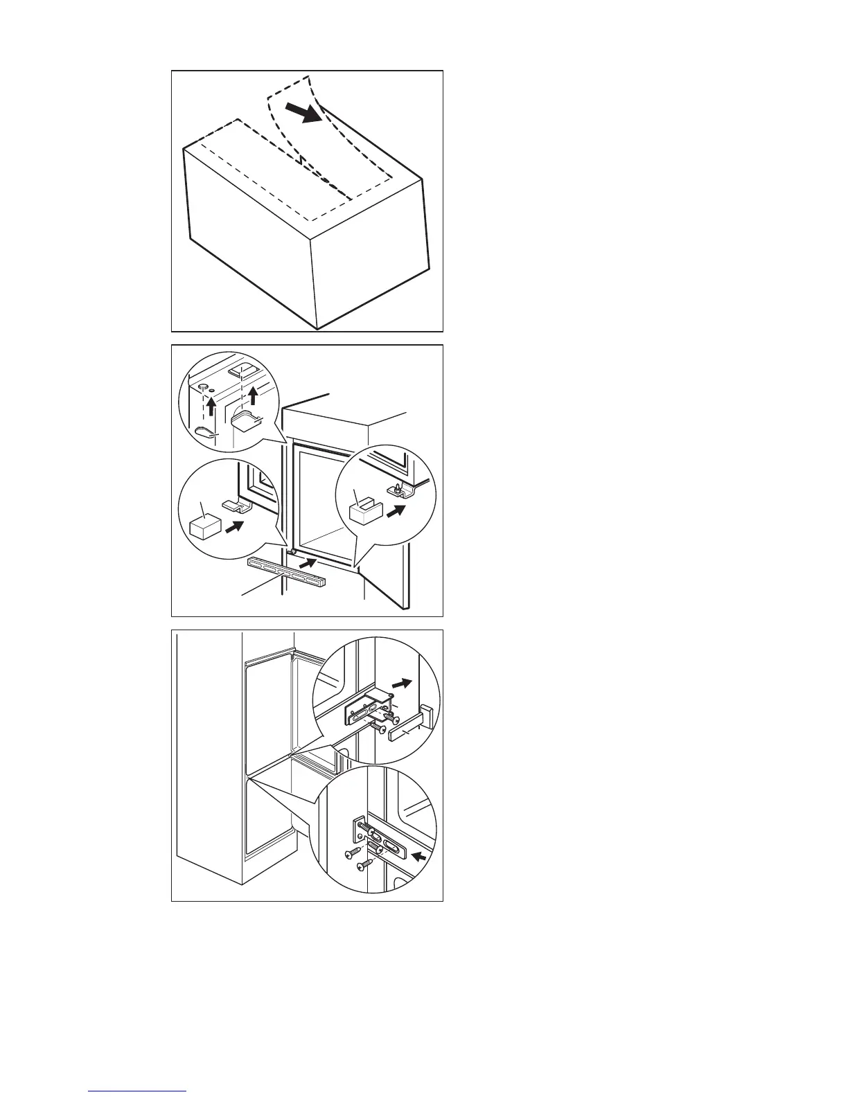 Fixez les cache-charnières (E) sur la