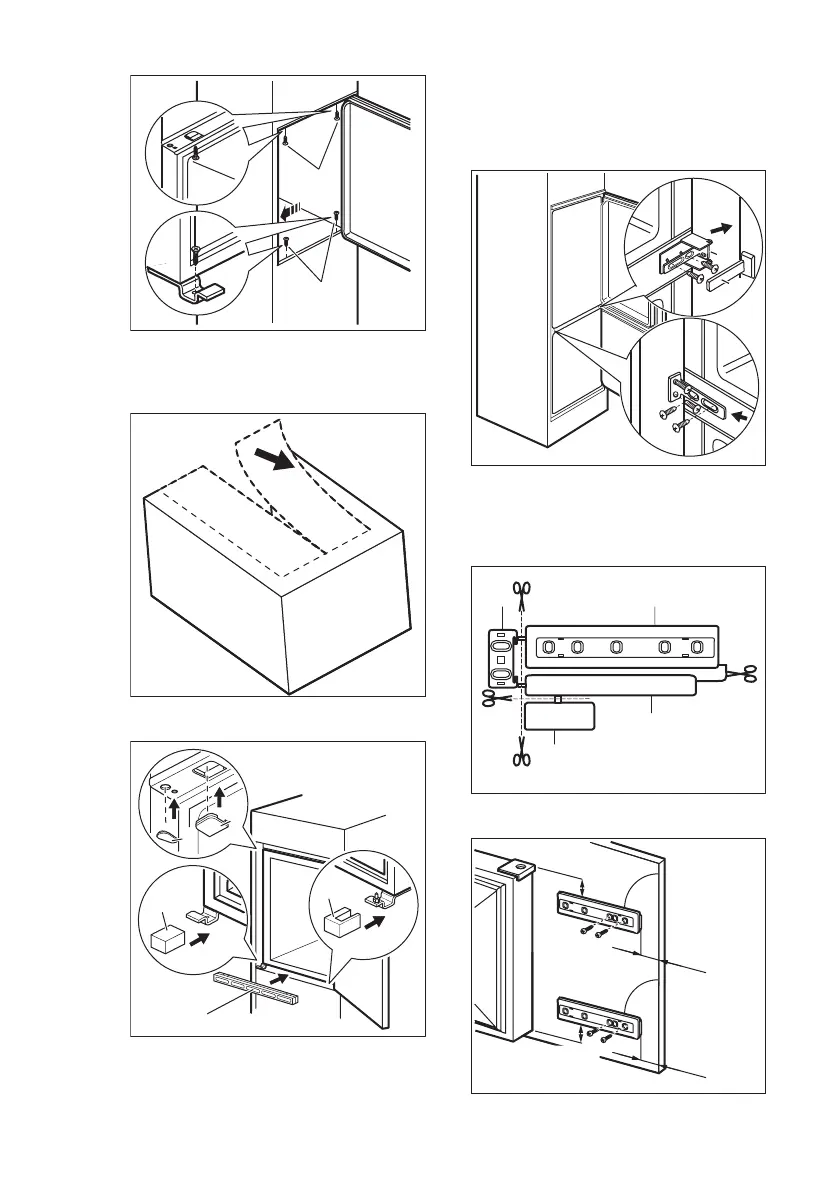 11. Attach the hinge covers (E) to the