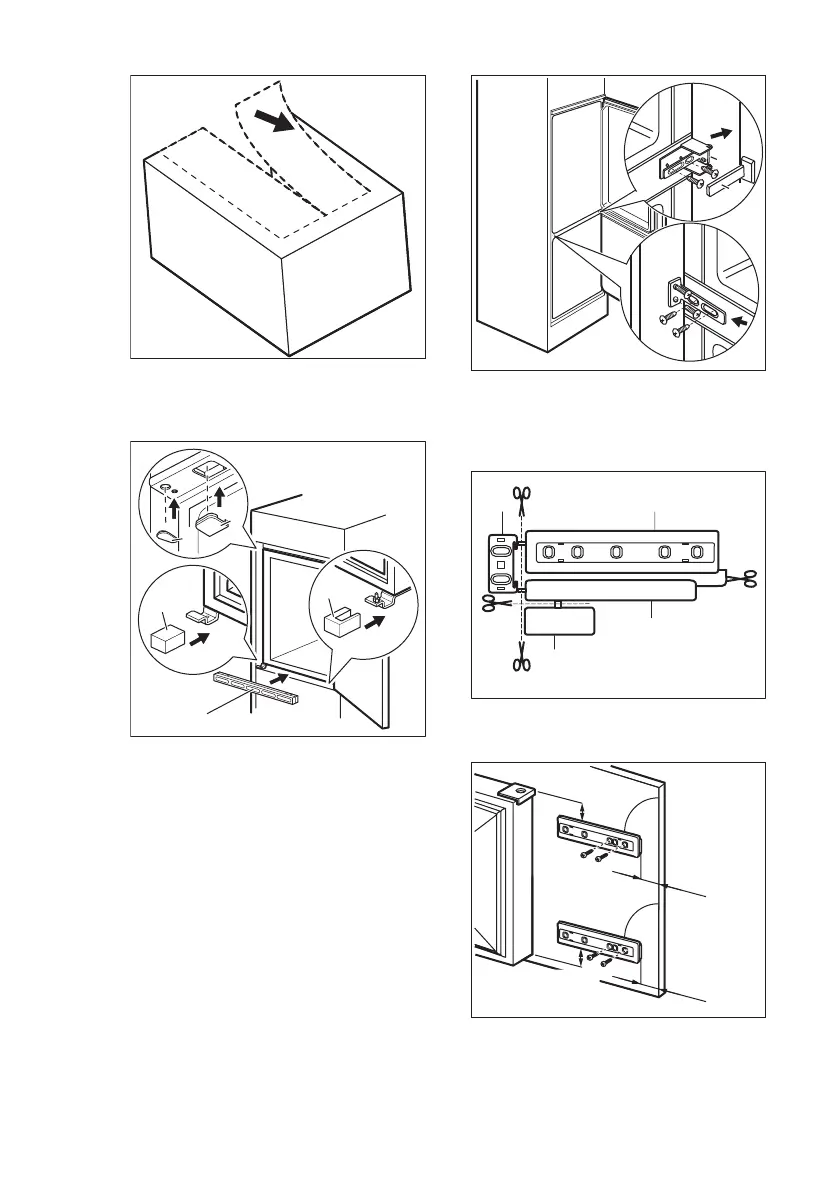 Scharnierabdeckungen (E) auf das