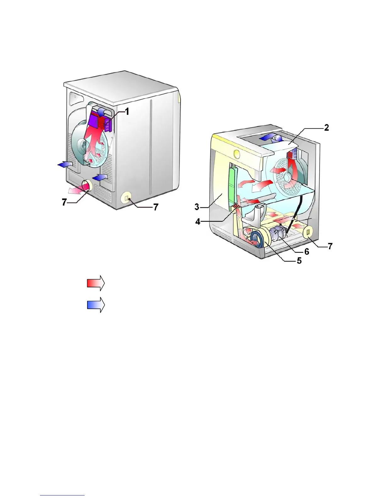 reducing humidity; it leaves through the front part of the drum (here the air is hot and humid) through a fluff