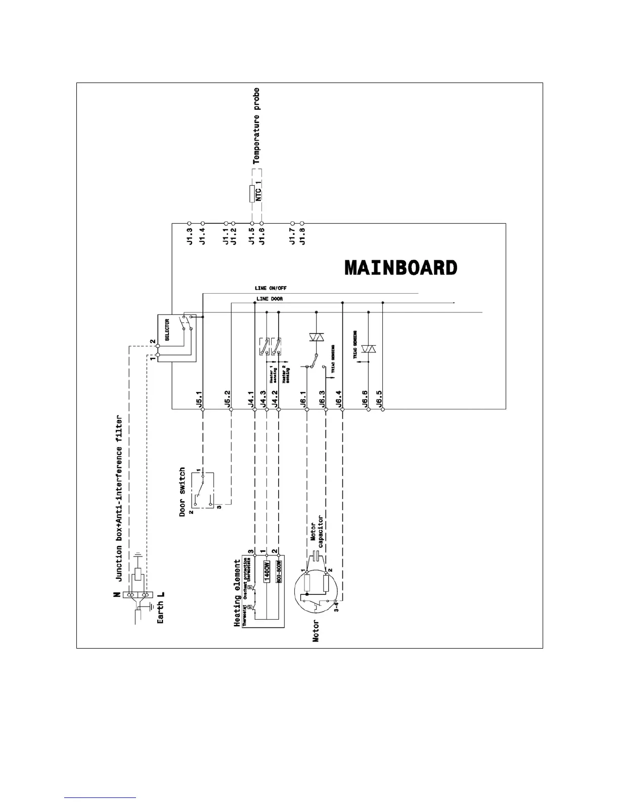 8.2 Wiring diagram for tumble dryers with temperature probe.