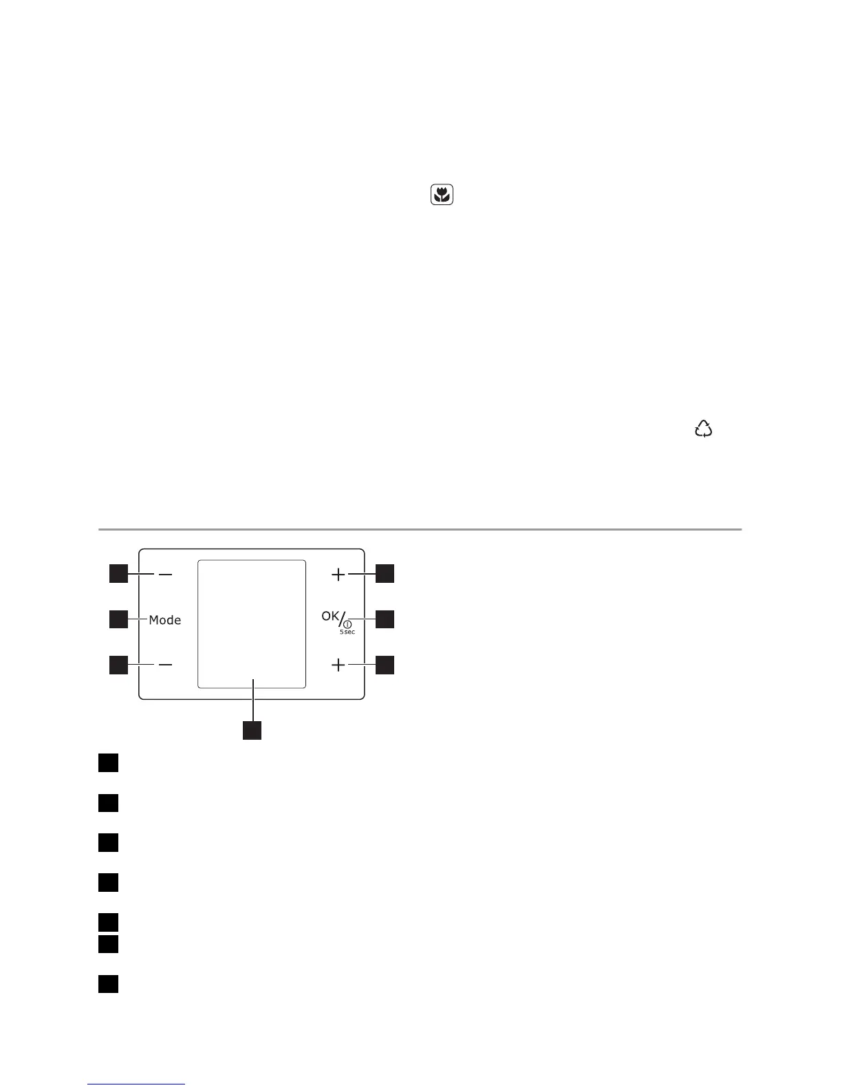 6 Botão de diminuição da temperatura do