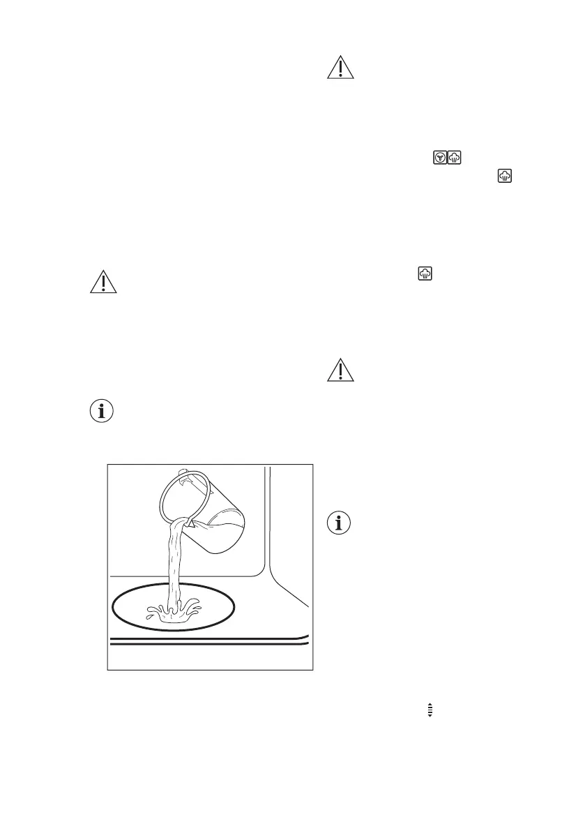 • Do not open the oven door when the