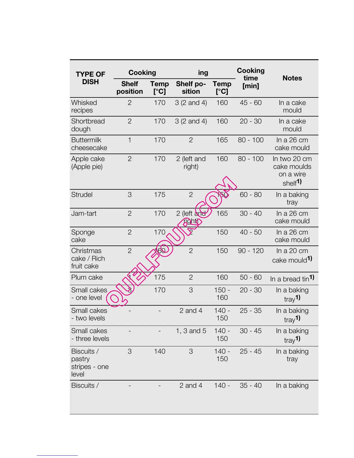 11.4 Baking and roasting table