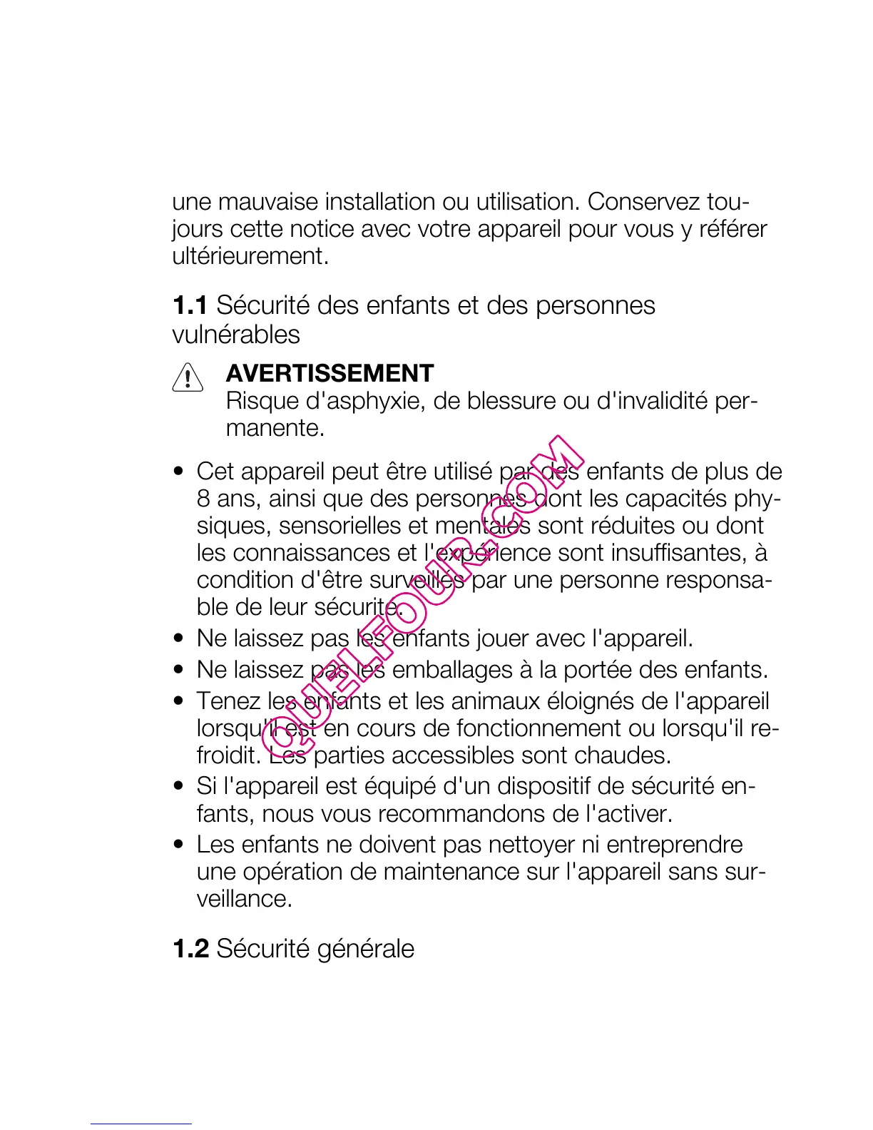 Risque d'asphyxie, de blessure ou d'invalidité per-