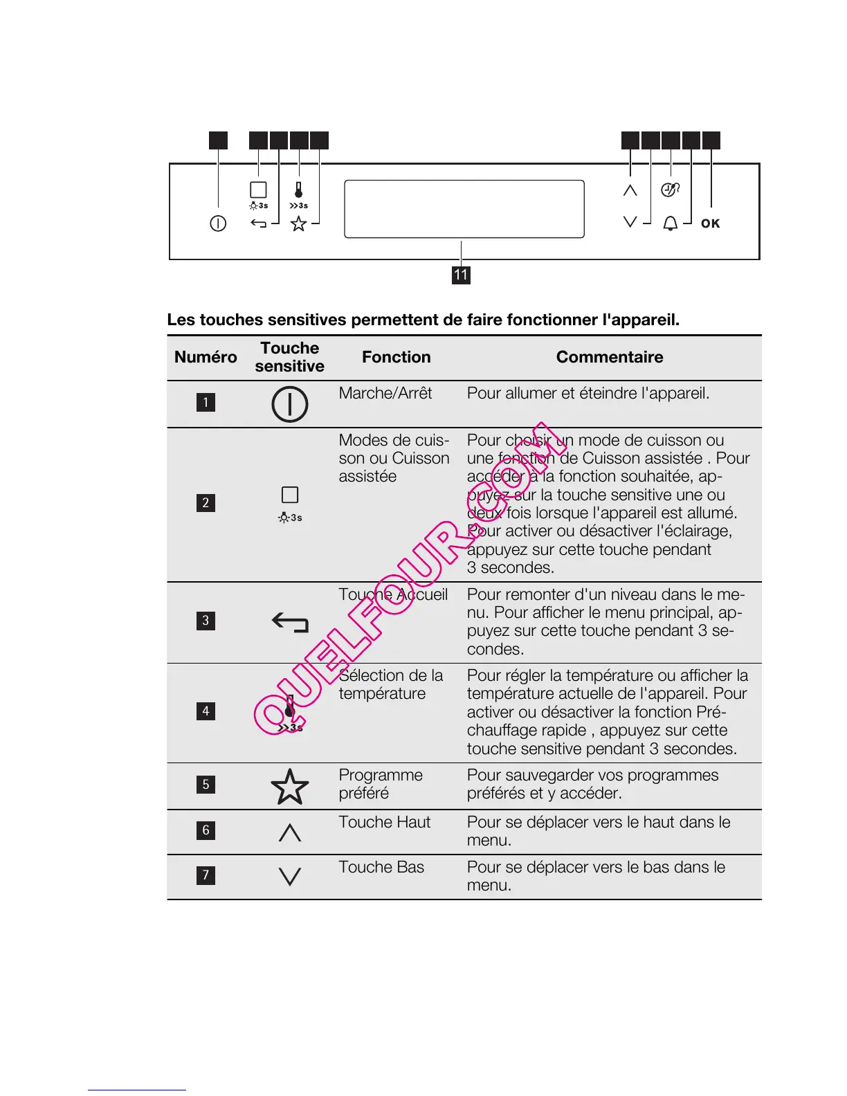 Les touches sensitives permettent de faire fonctionner l'appareil.