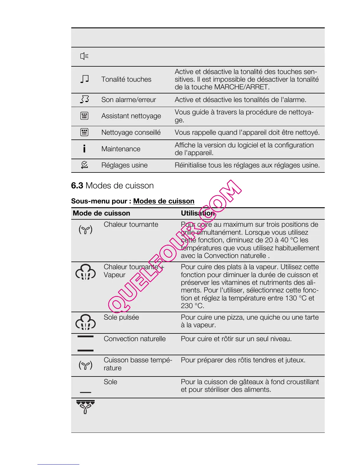 6.3 Modes de cuisson