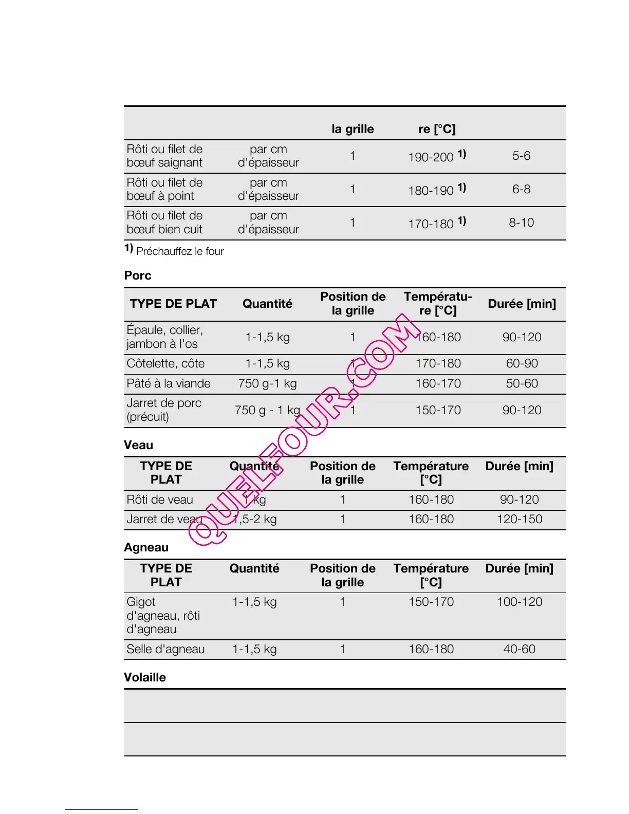 Rôti de veau 1 kg 1 160-180 90-120