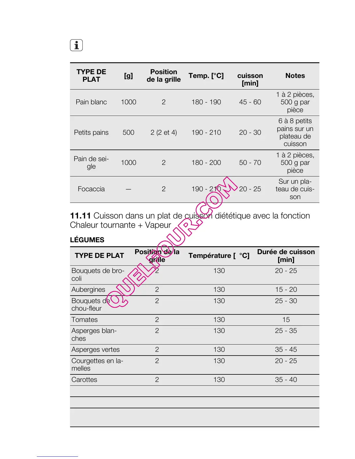 11.11 Cuisson dans un plat de cuisson diététique avec la fonction