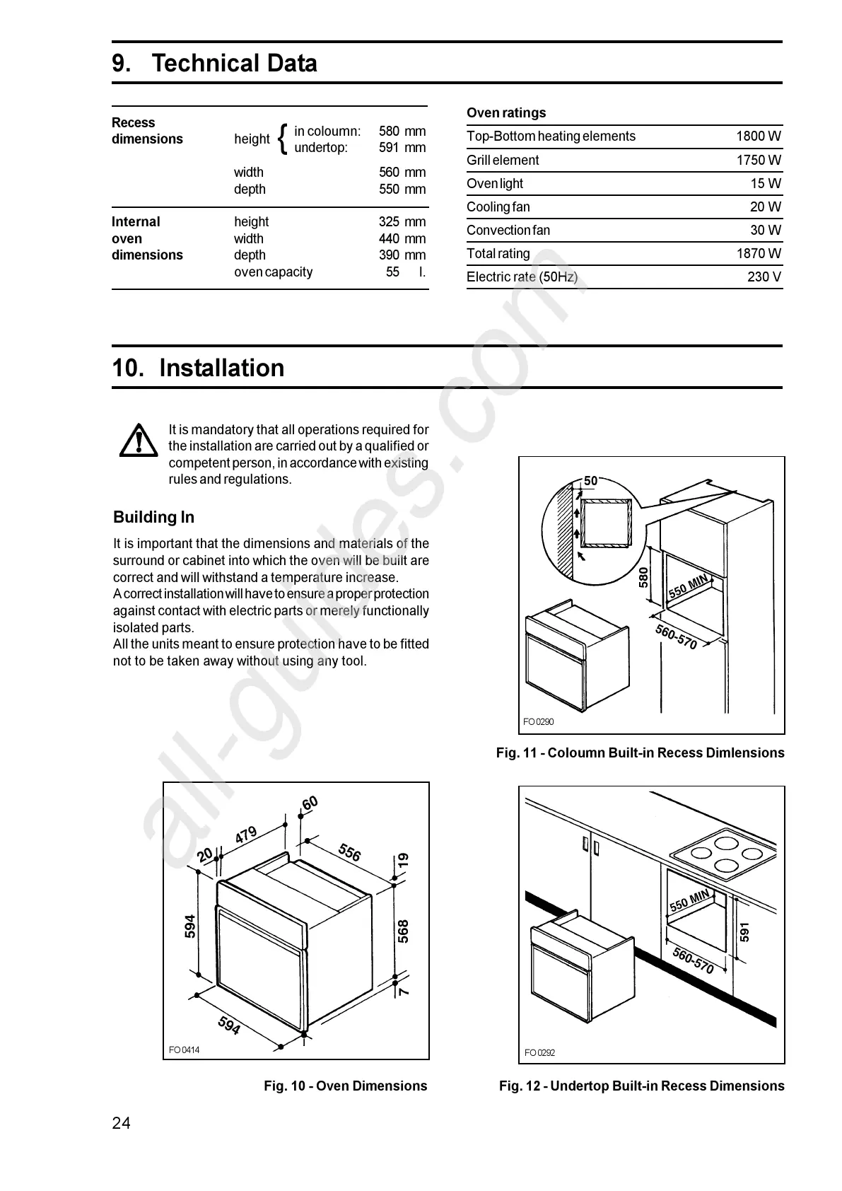 Fig. 10 - Oven Dimensions