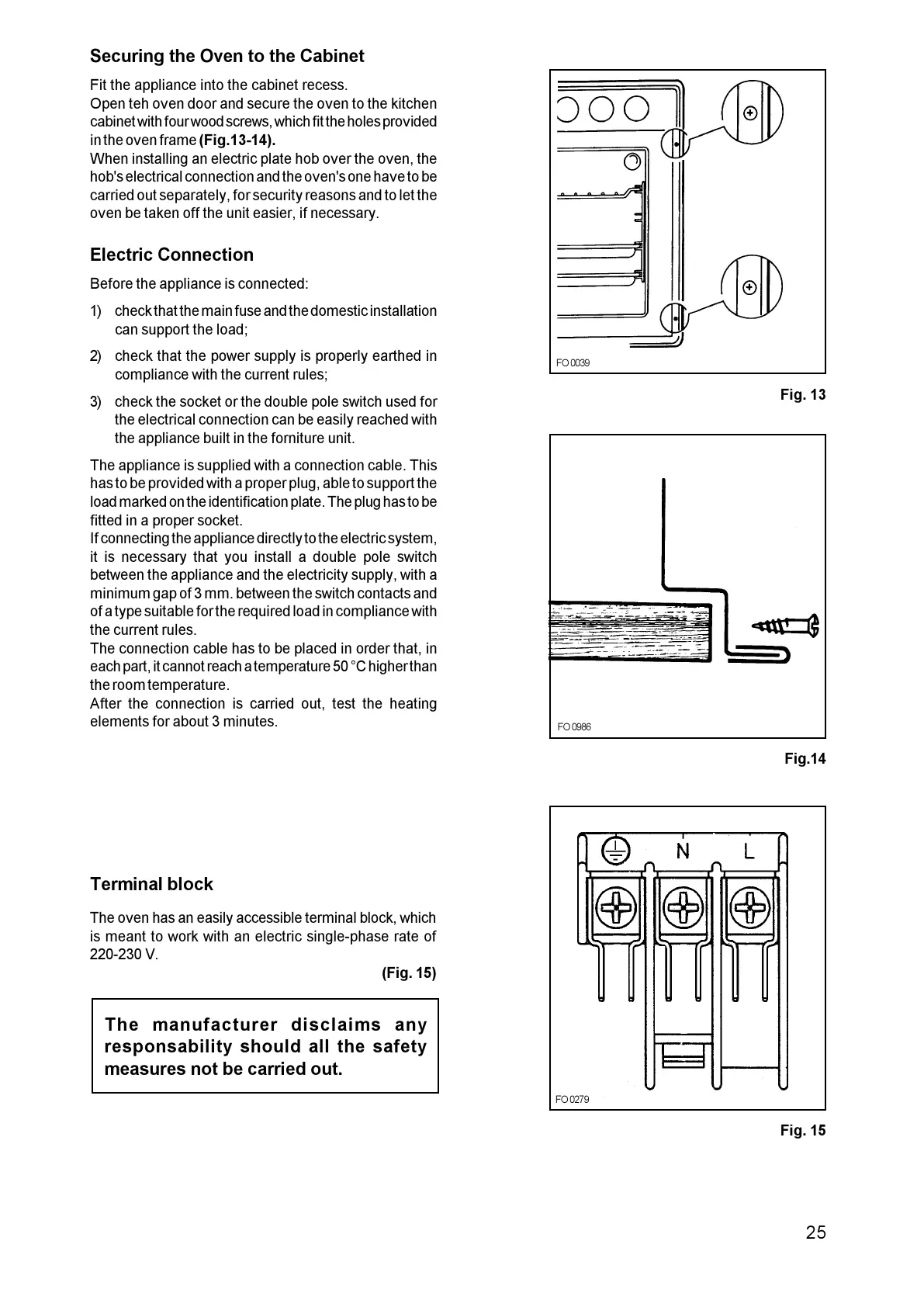 hob's electrical connection and the oven's one have to be