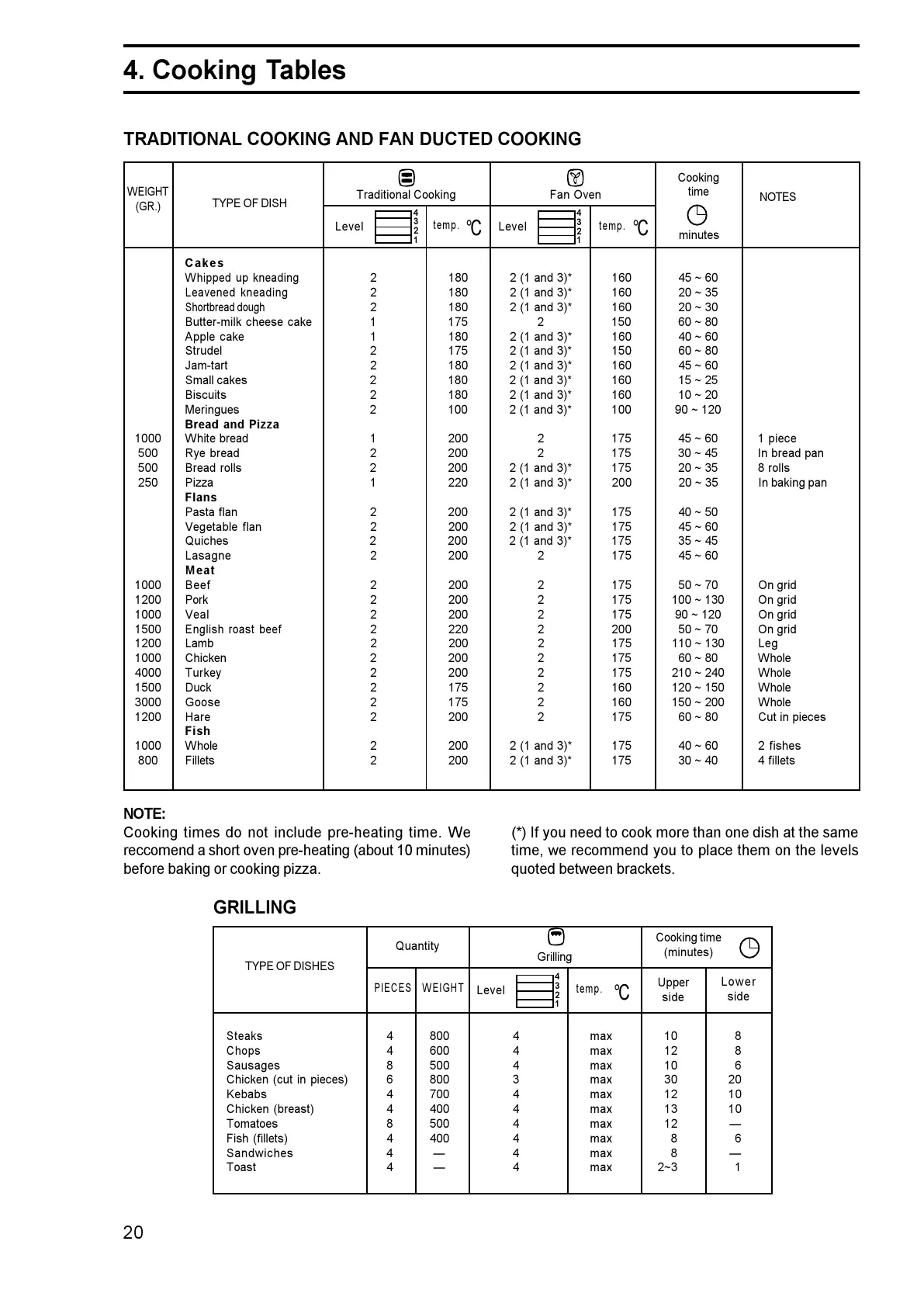 Cooking times do not include pre-heating time. We