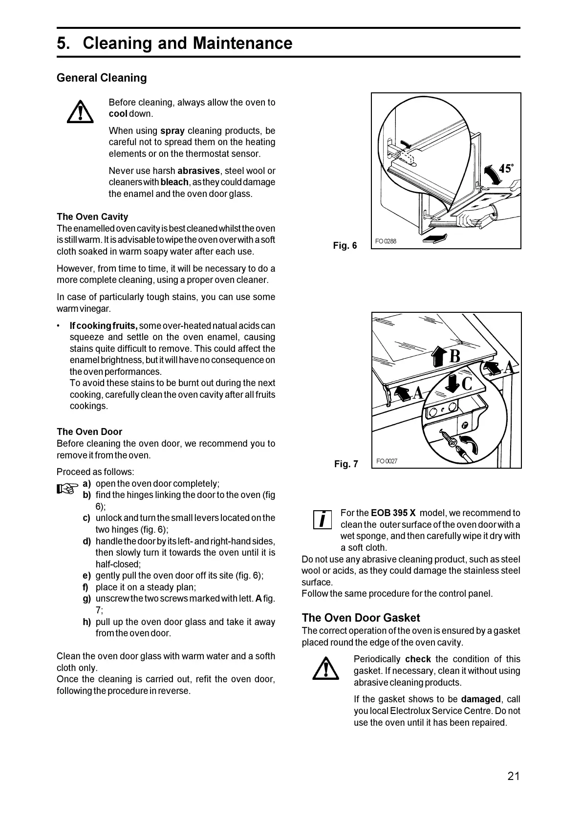 e) gently pull the oven door off its site (fig. 6);
