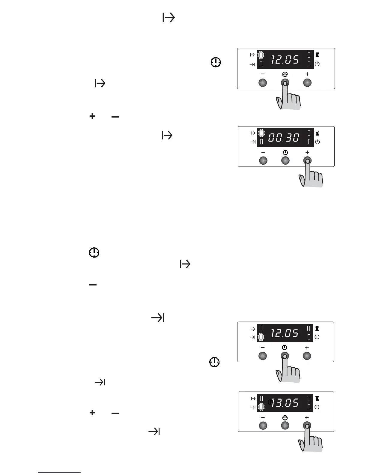 2. Press button “ ” until the display shows “0:00”. After