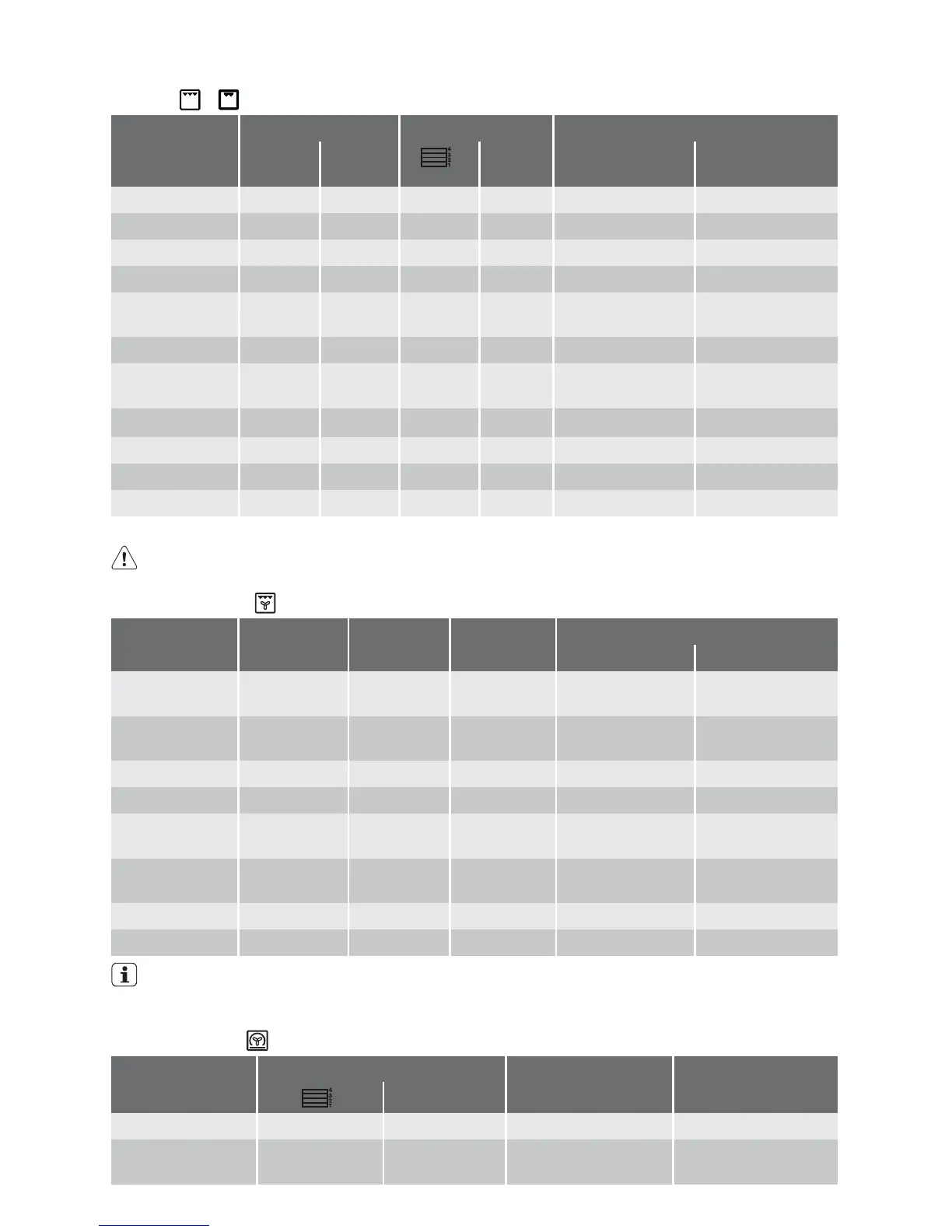 Shelf level Temp. °C Cooking time in minutes