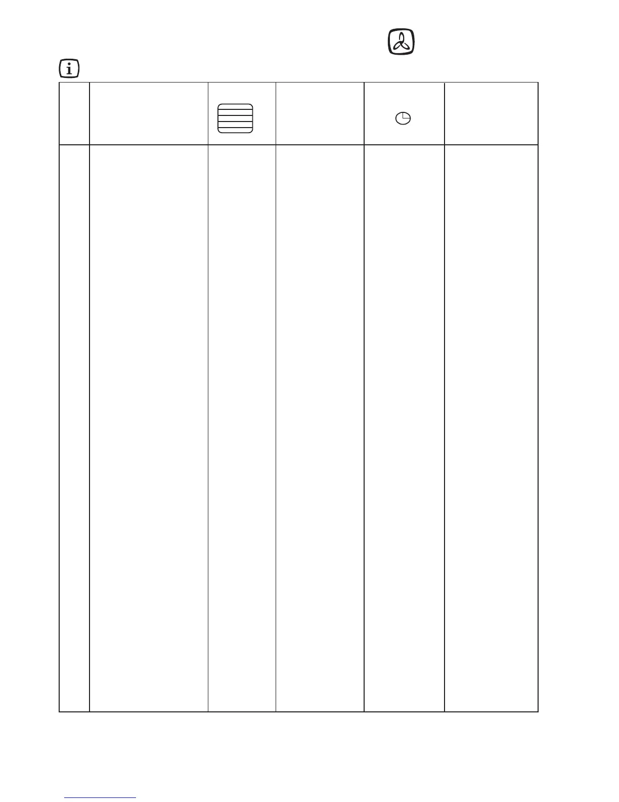 Cooking times in the tables do not include pre-heating. We recommend to pre-heat the oven for about 10