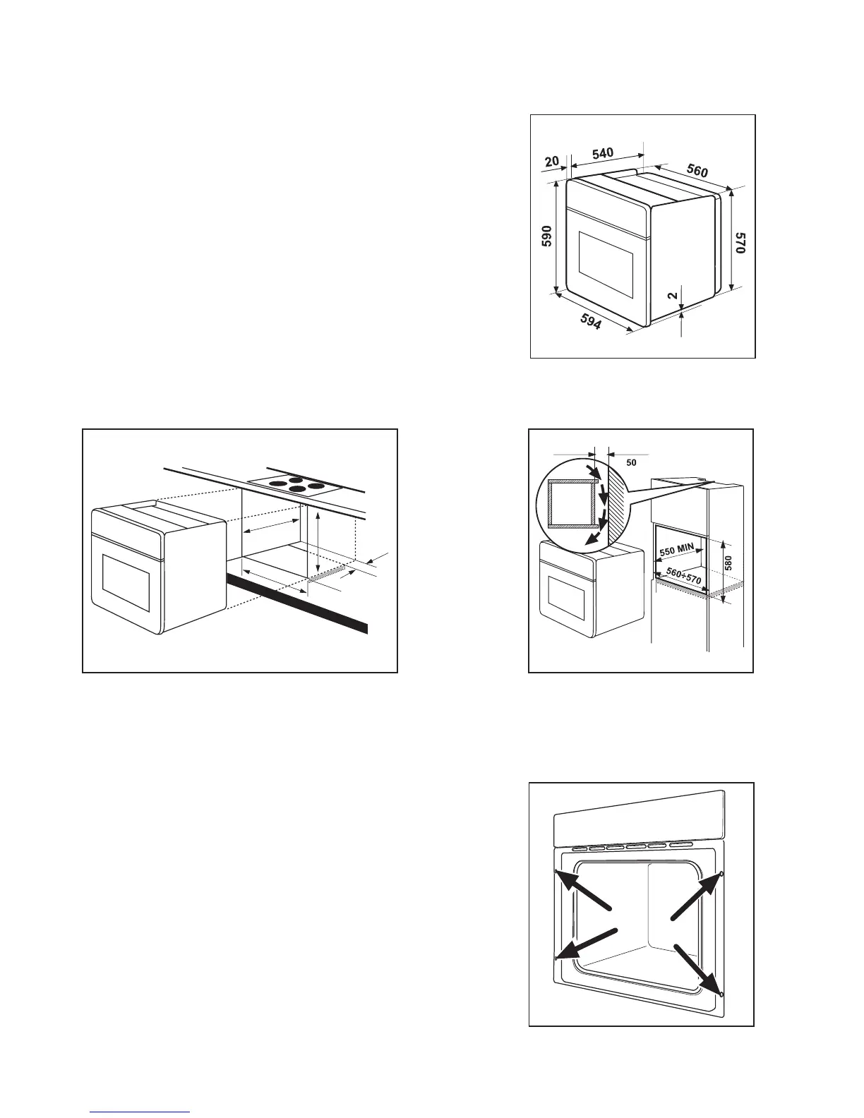 1. Fit the oven into the cabinet recess,