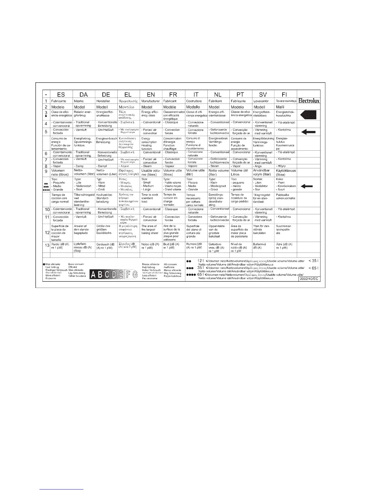 Electrolux EOB 6790 - Energy Efficiency and Technical Data; Energy and Technical Data Comparison