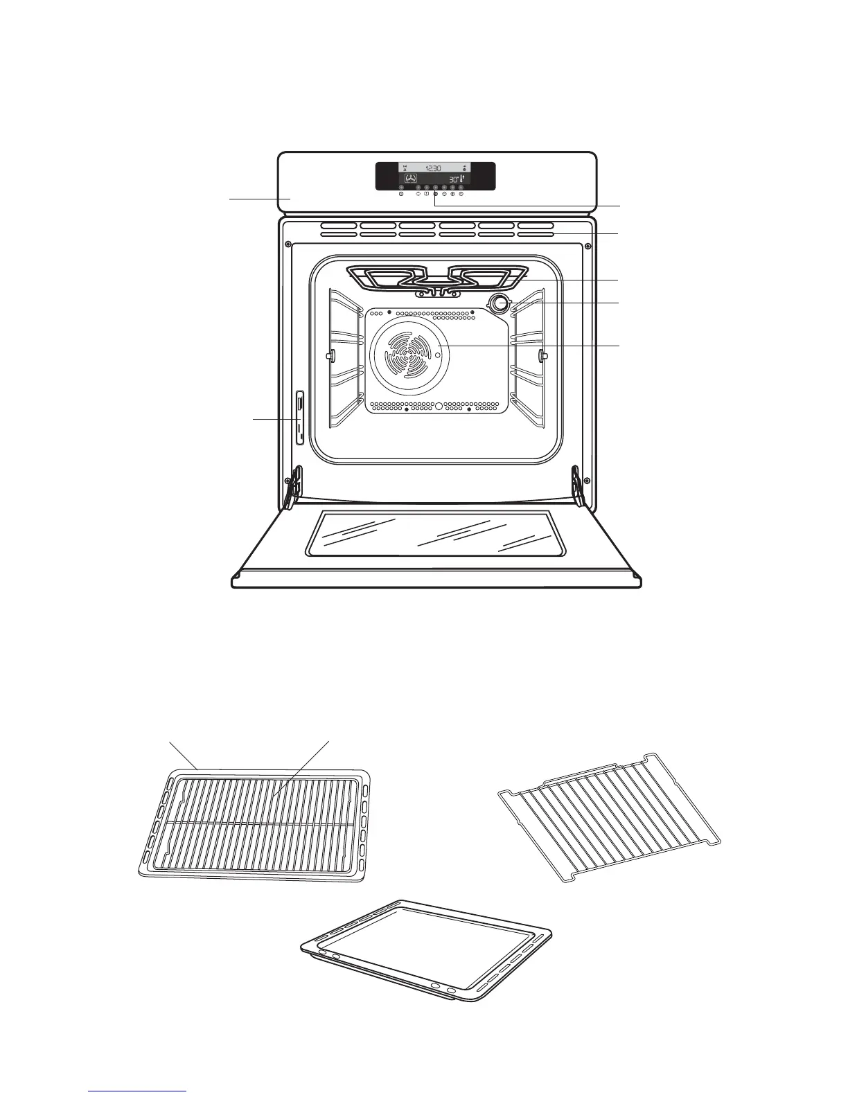 Electrolux EOB 6790 - Oven Description and Components; Control Panel and Rating Plate Identification; Oven Internal Components Identification; Oven Accessories Overview