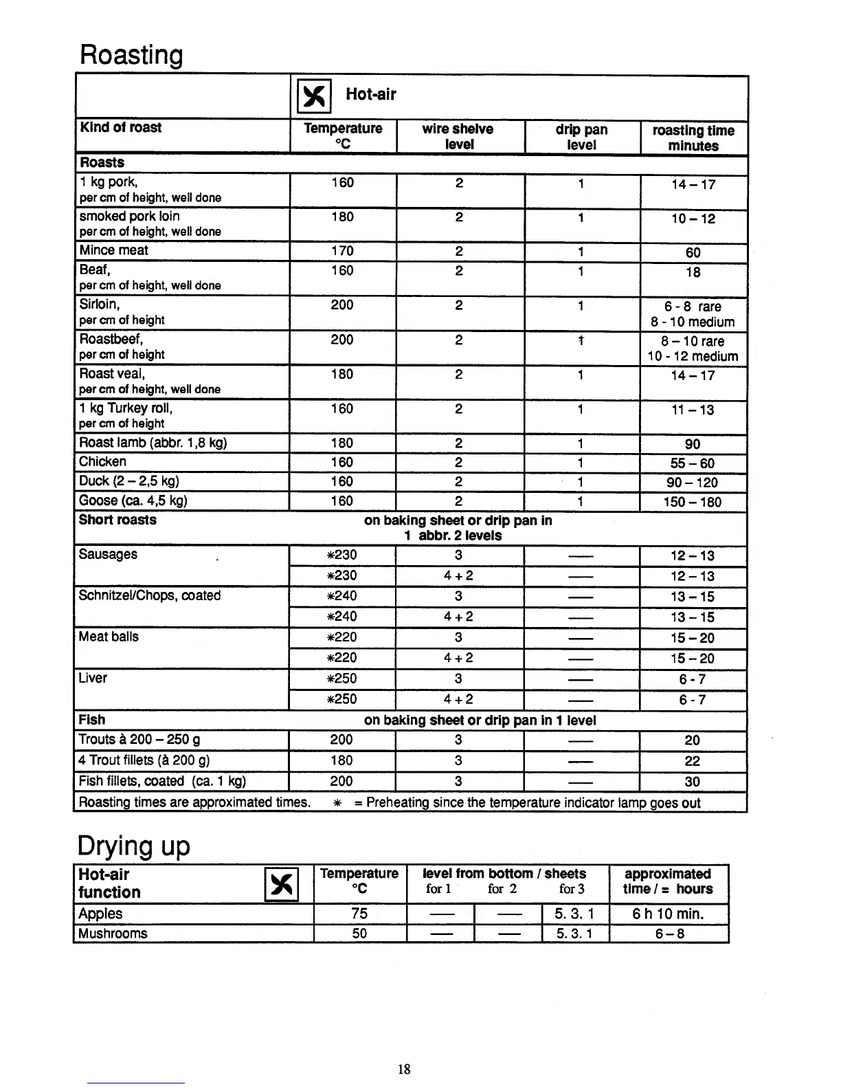 Electrolux EOB 944 - Cooking Charts: Roasting & Drying; Hot-Air Roasting Guide