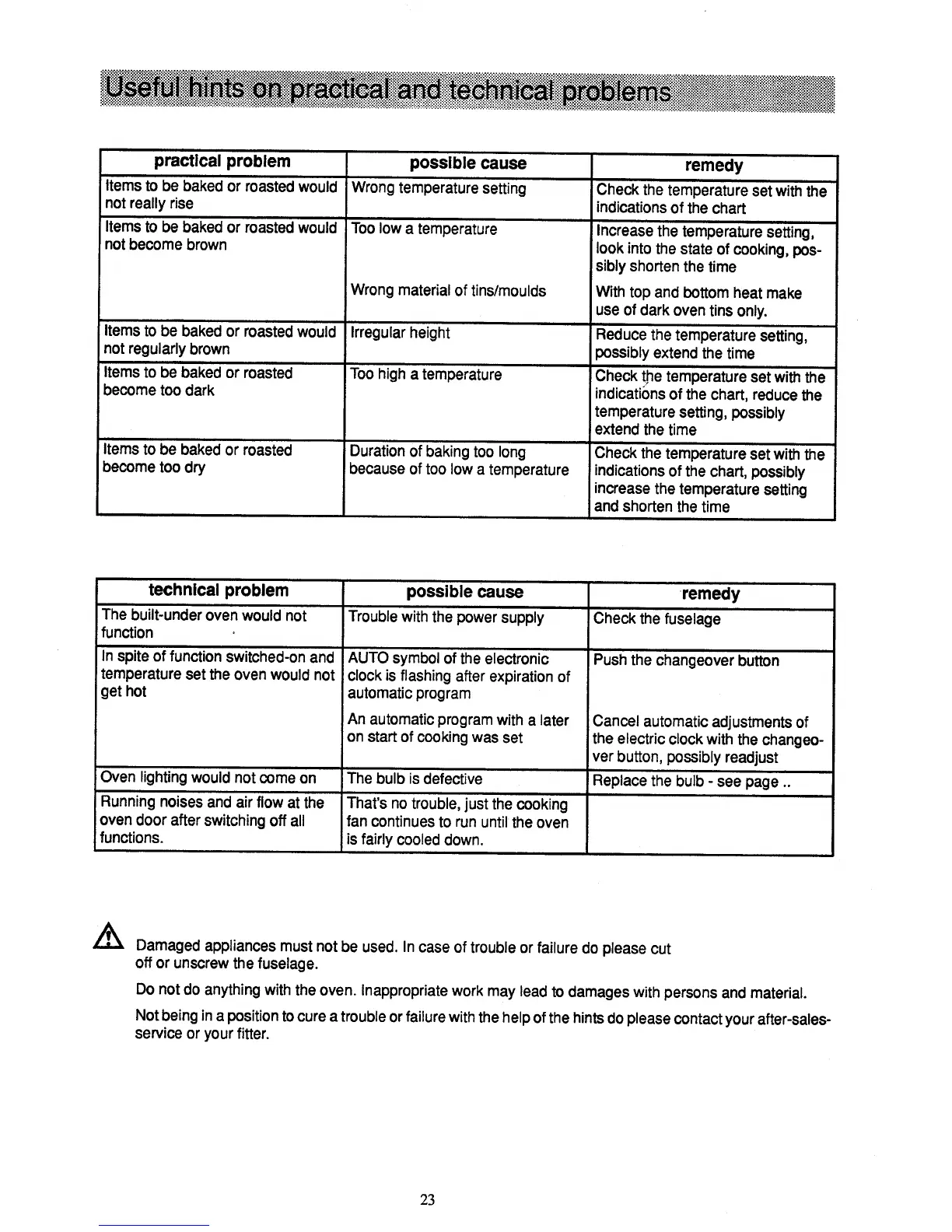 Electrolux EOB 944 - Troubleshooting Common Issues; Practical Problem Solutions; Technical Problem Solutions