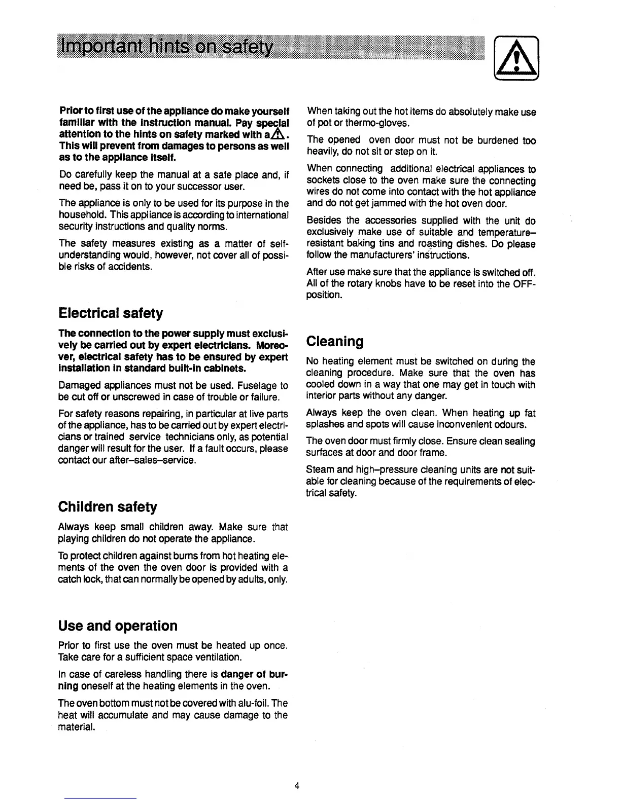 Electrolux EOB 944 - Important Safety Information; Electrical Safety Precautions; Child Safety Measures