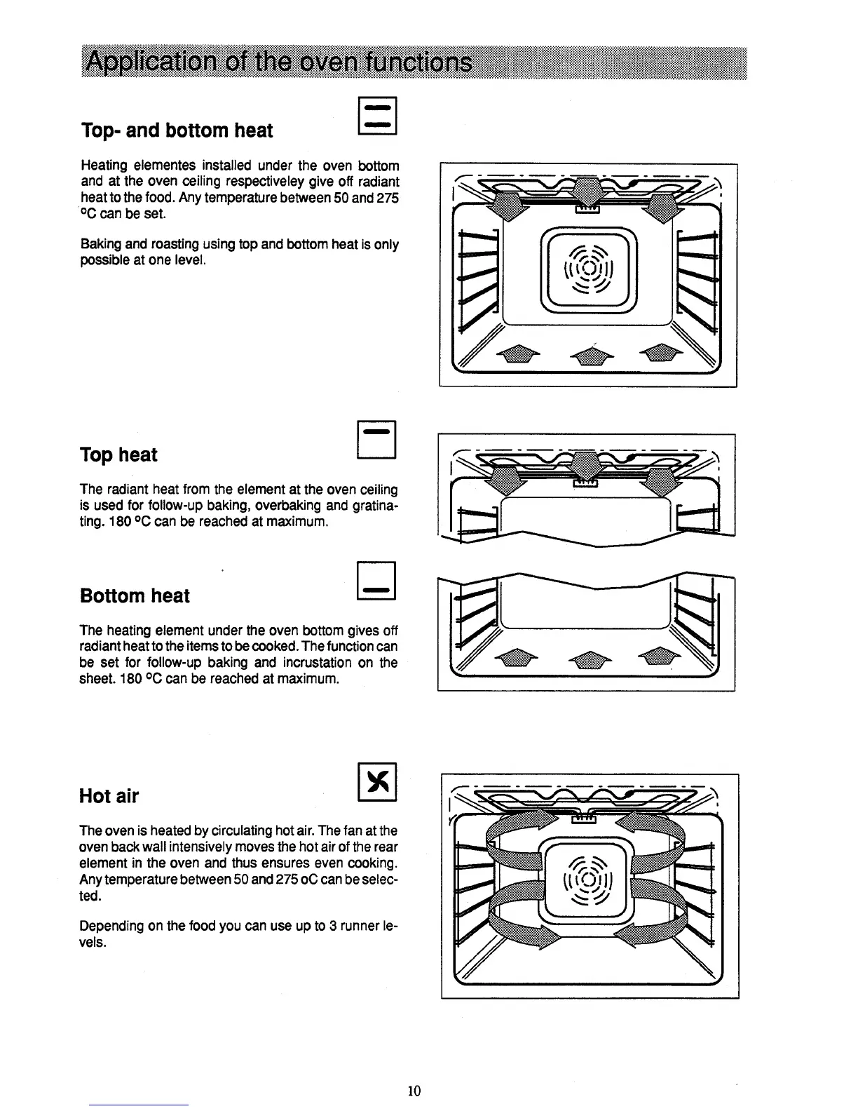 Electrolux EOB 944 - Applying Oven Functions; Top and Bottom Heat Cooking; Top Heat Cooking; Bottom Heat Cooking