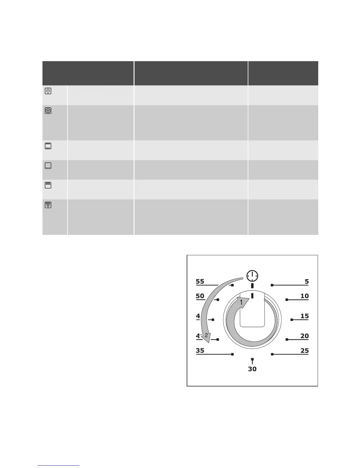 The oven has the following functions: