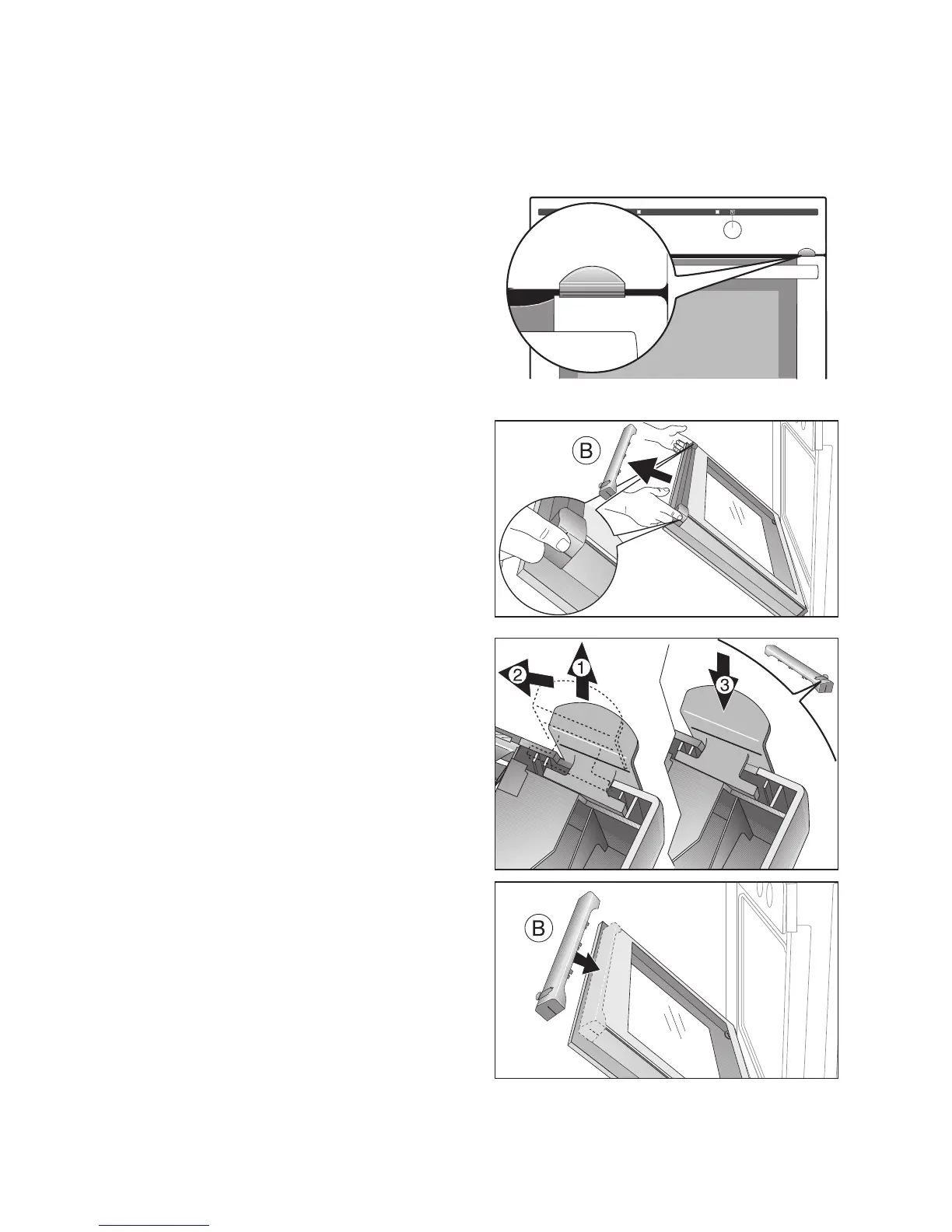 3. Take hold of the door trim (B) at each