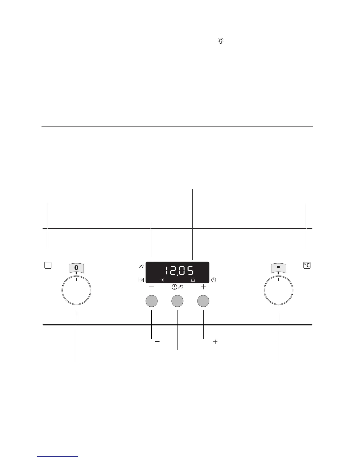 Oven function selection Temperature selector