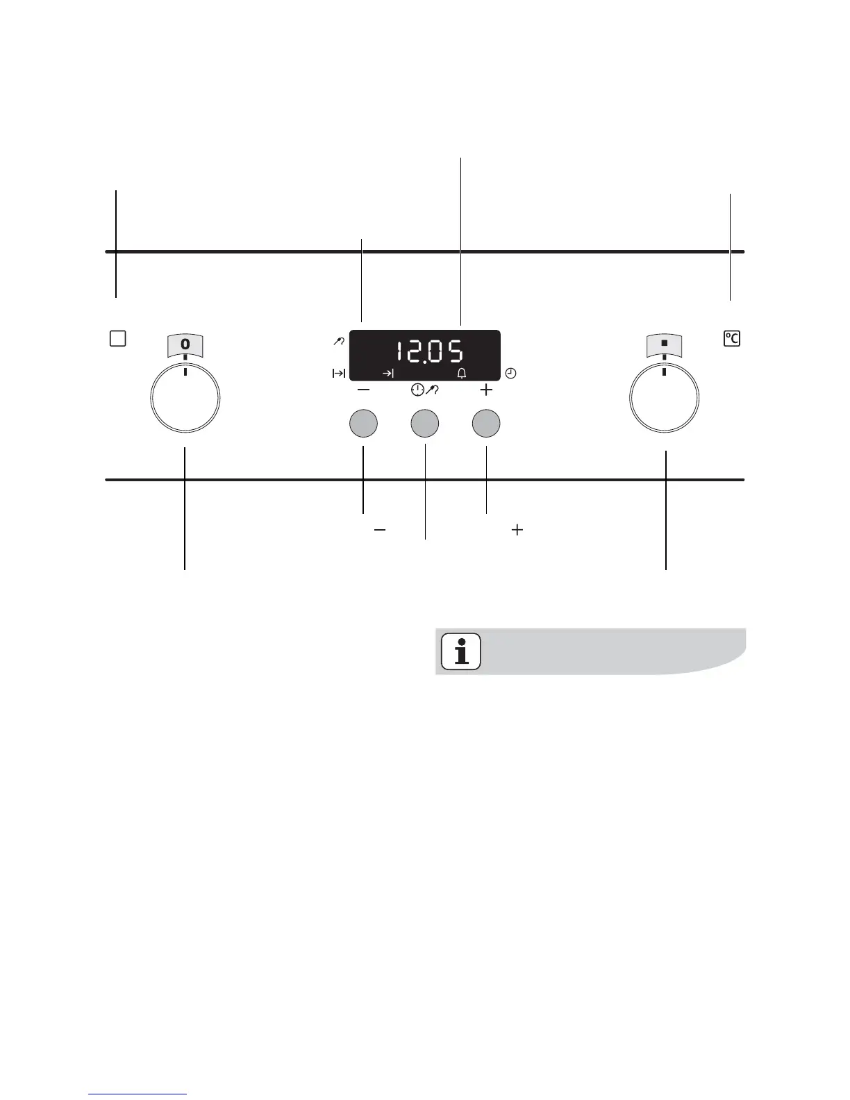 Oven function selection Temperature selector