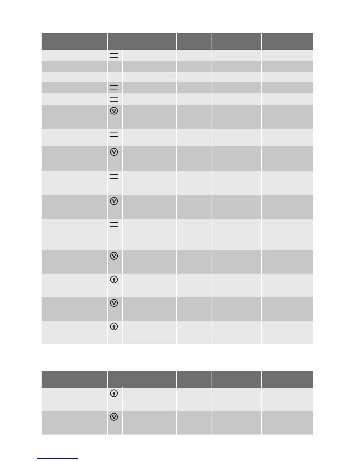 Type of baking Oven function Level Temperature