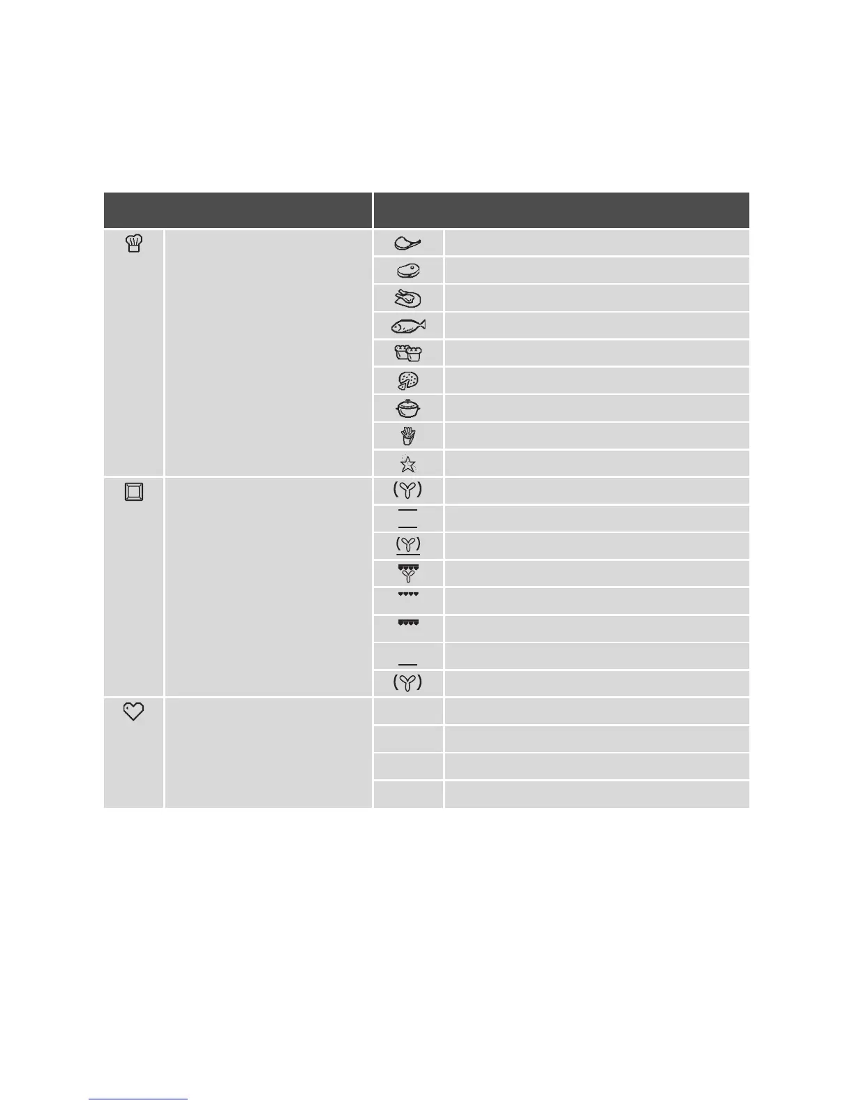 Heating Functions Fan Cooking