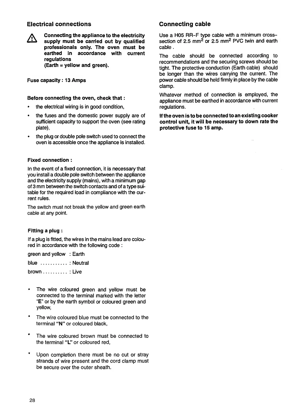 Electrolux EOB944 - Electrical Connections; Connecting Cable