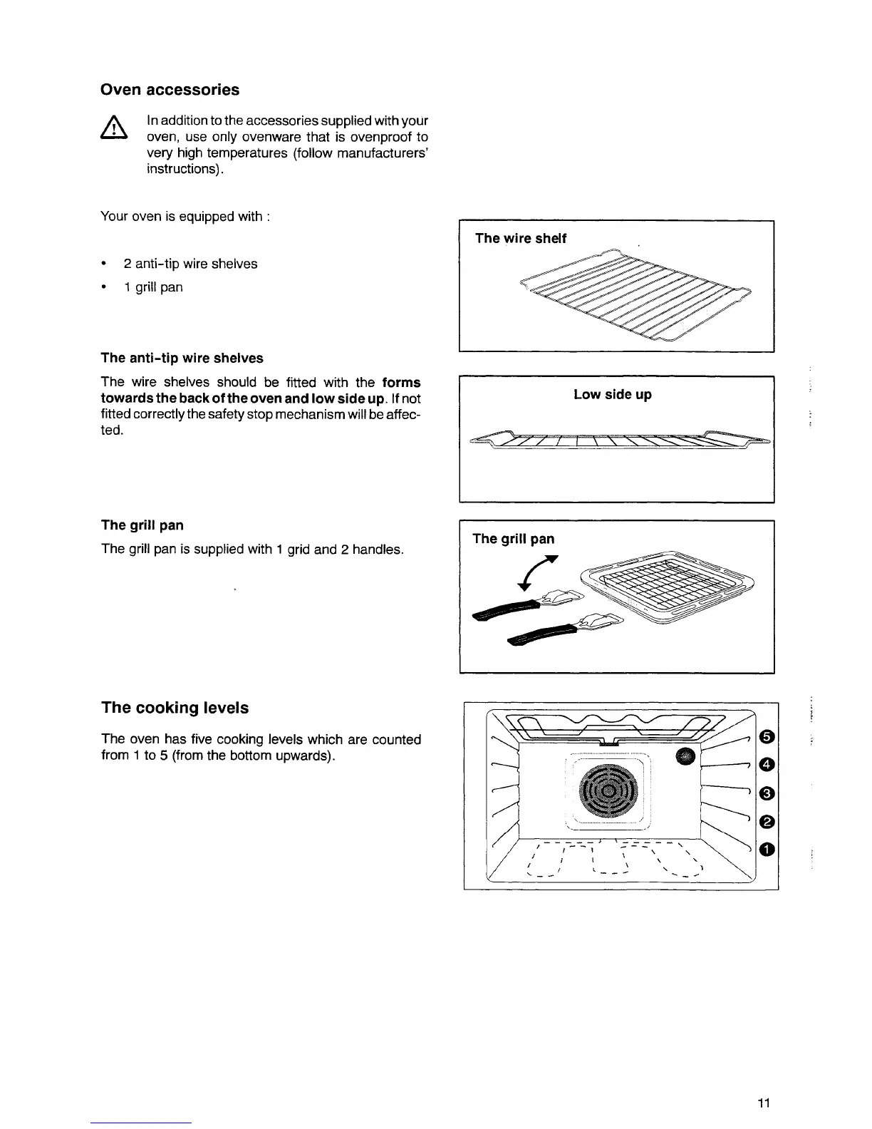 Electrolux EOB977 - Oven Accessories; The Anti-Tip Wire Shelves; The Grill Pan; The Cooking Levels
