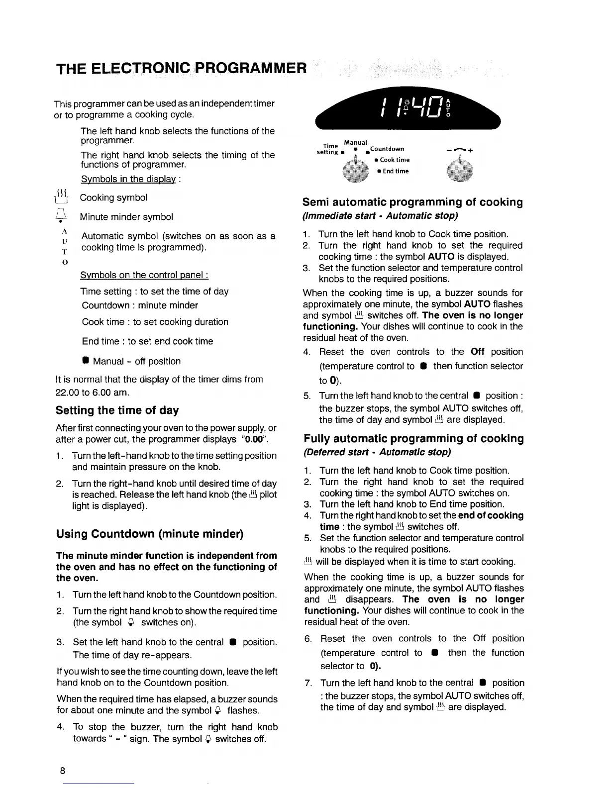 Electrolux EOB977 - Electronic Programmer Guide; Semi-Automatic Cooking; Fully Automatic Cooking