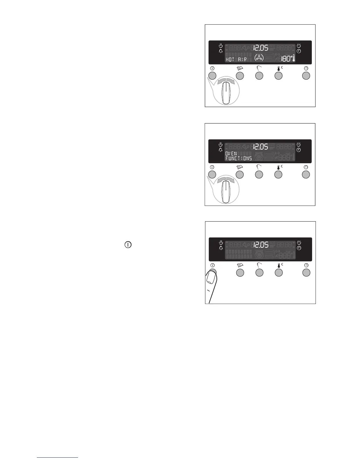 Turn the oven functions control knob until