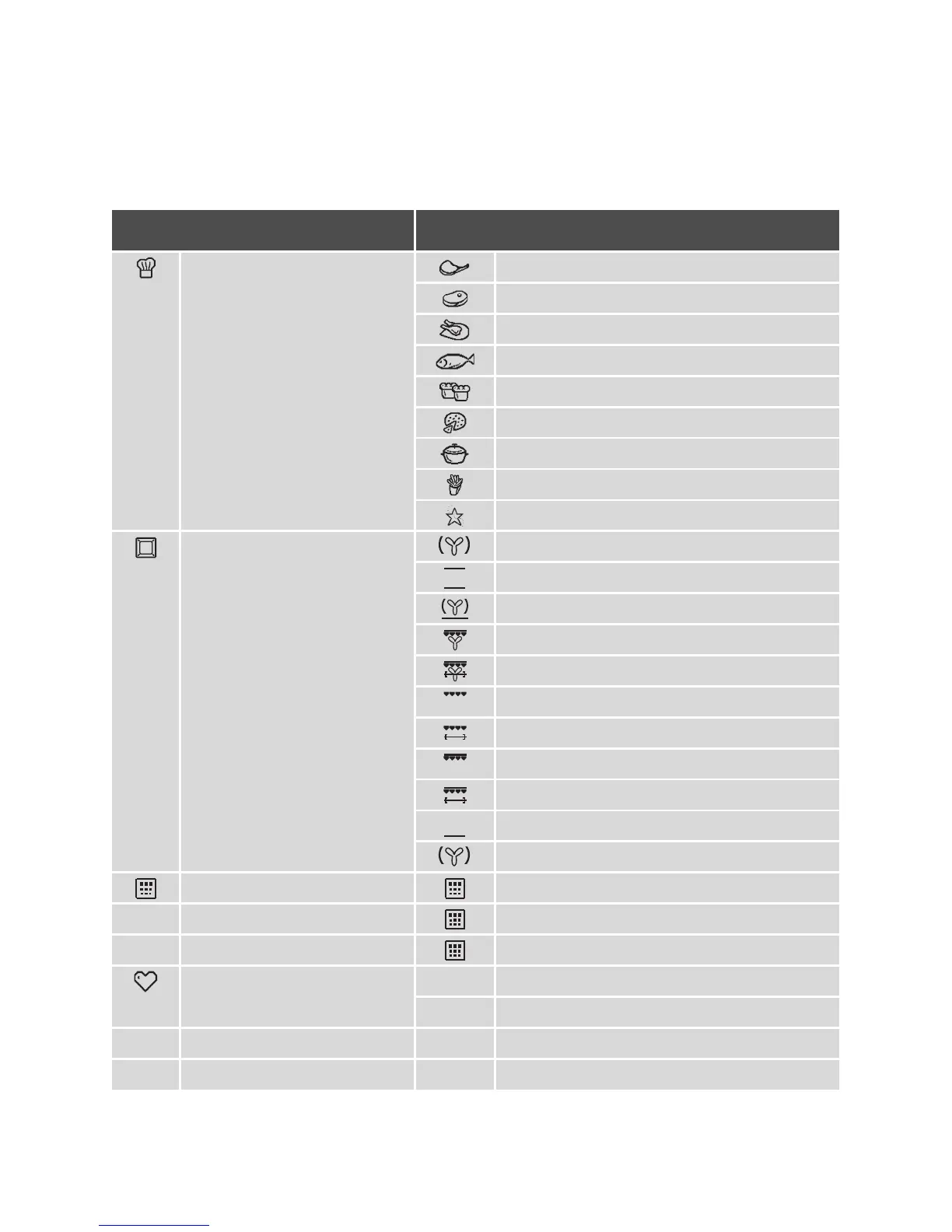 Heating Functions Fan Cooking