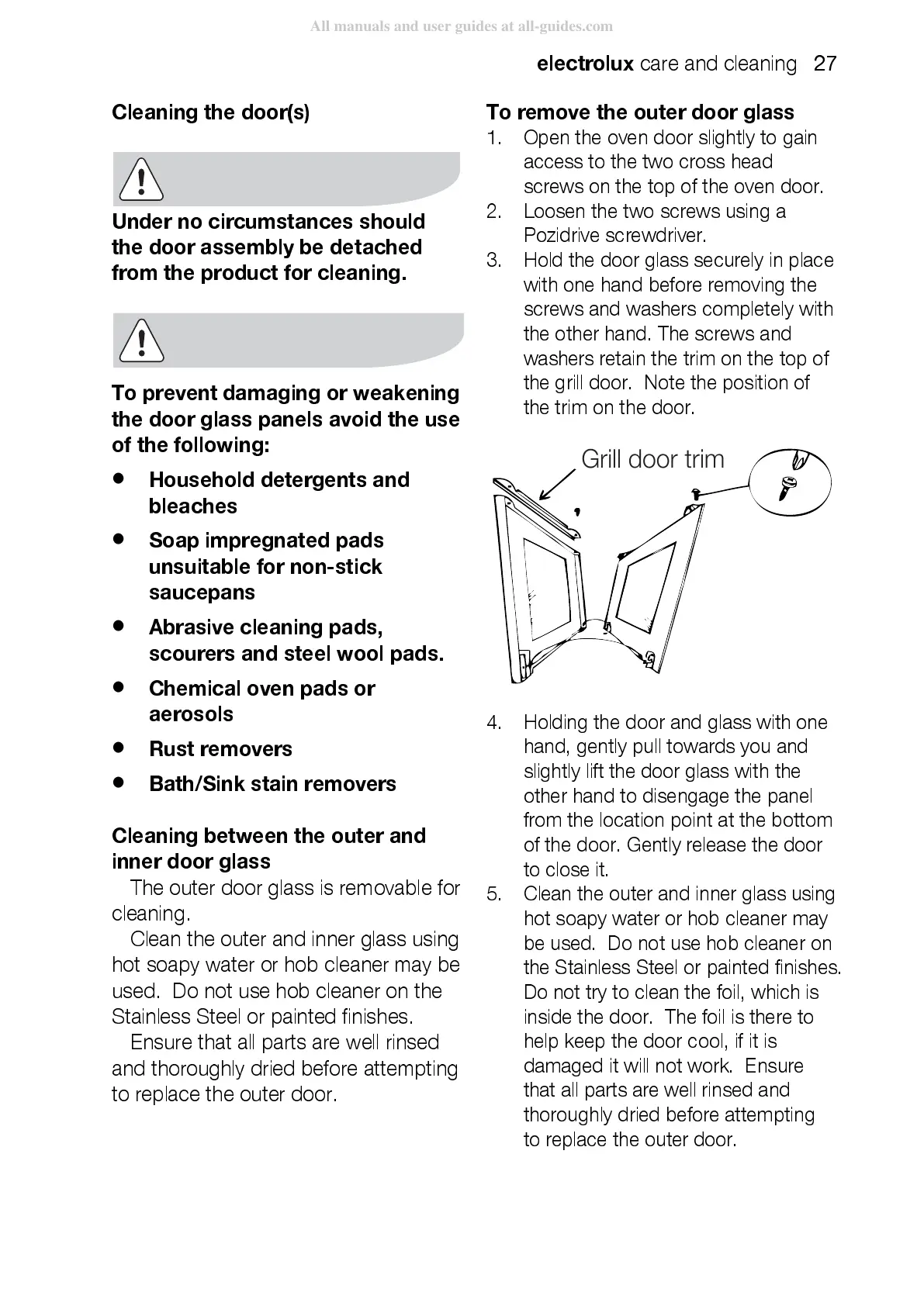 Cleaning the door(s)