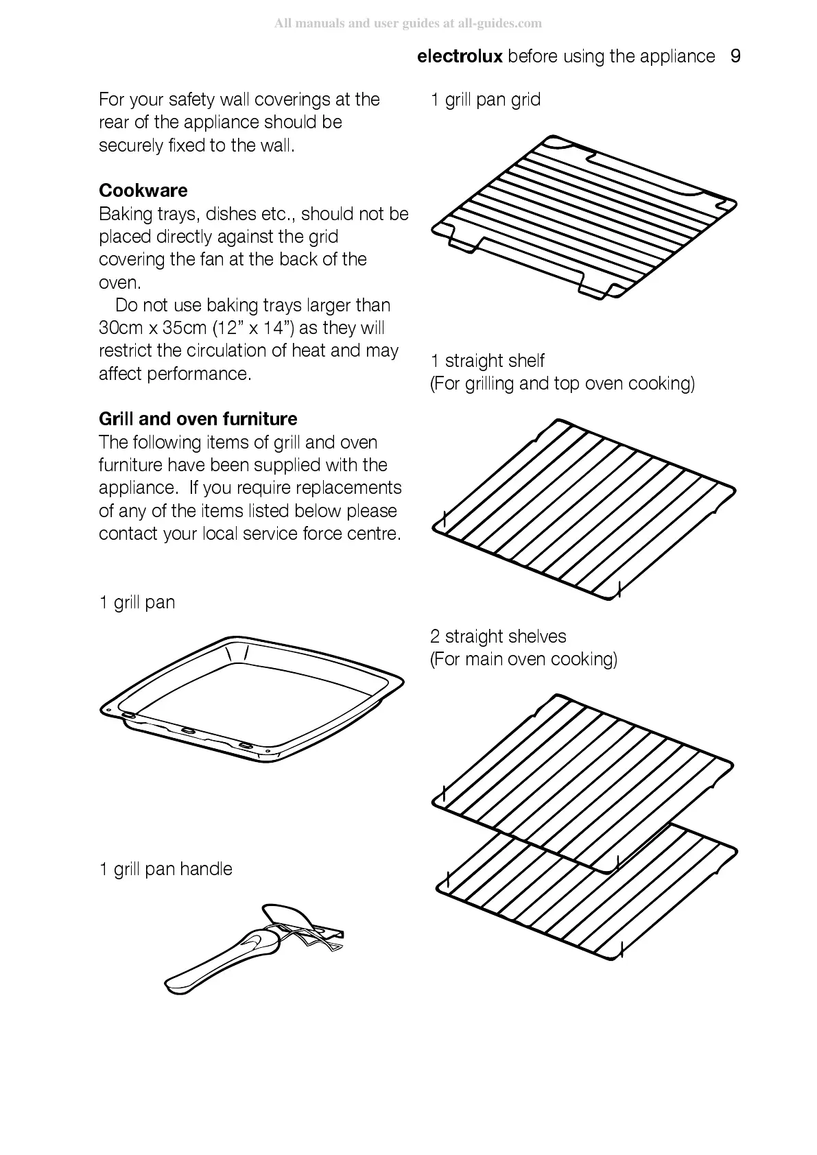 Baking trays, dishes etc., should not be