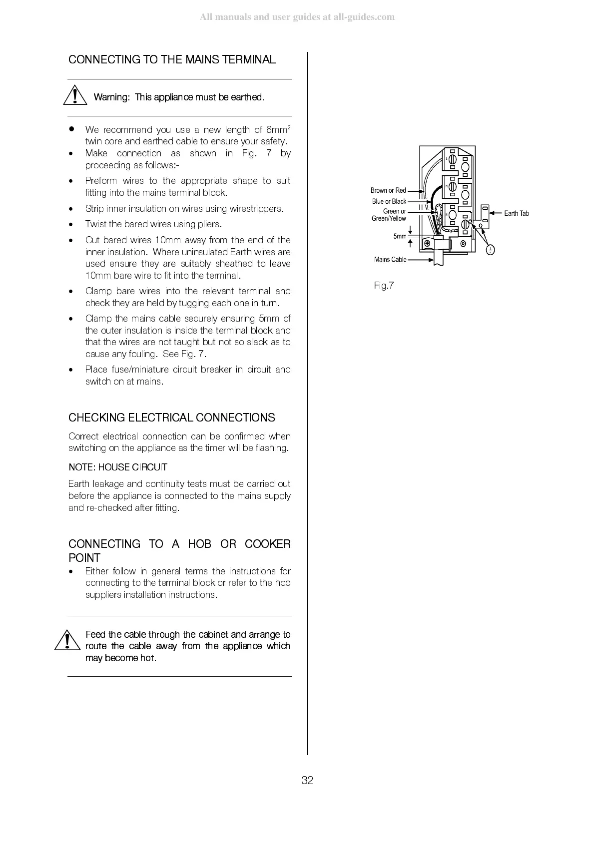 connecting to the terminal block or refer to the hob