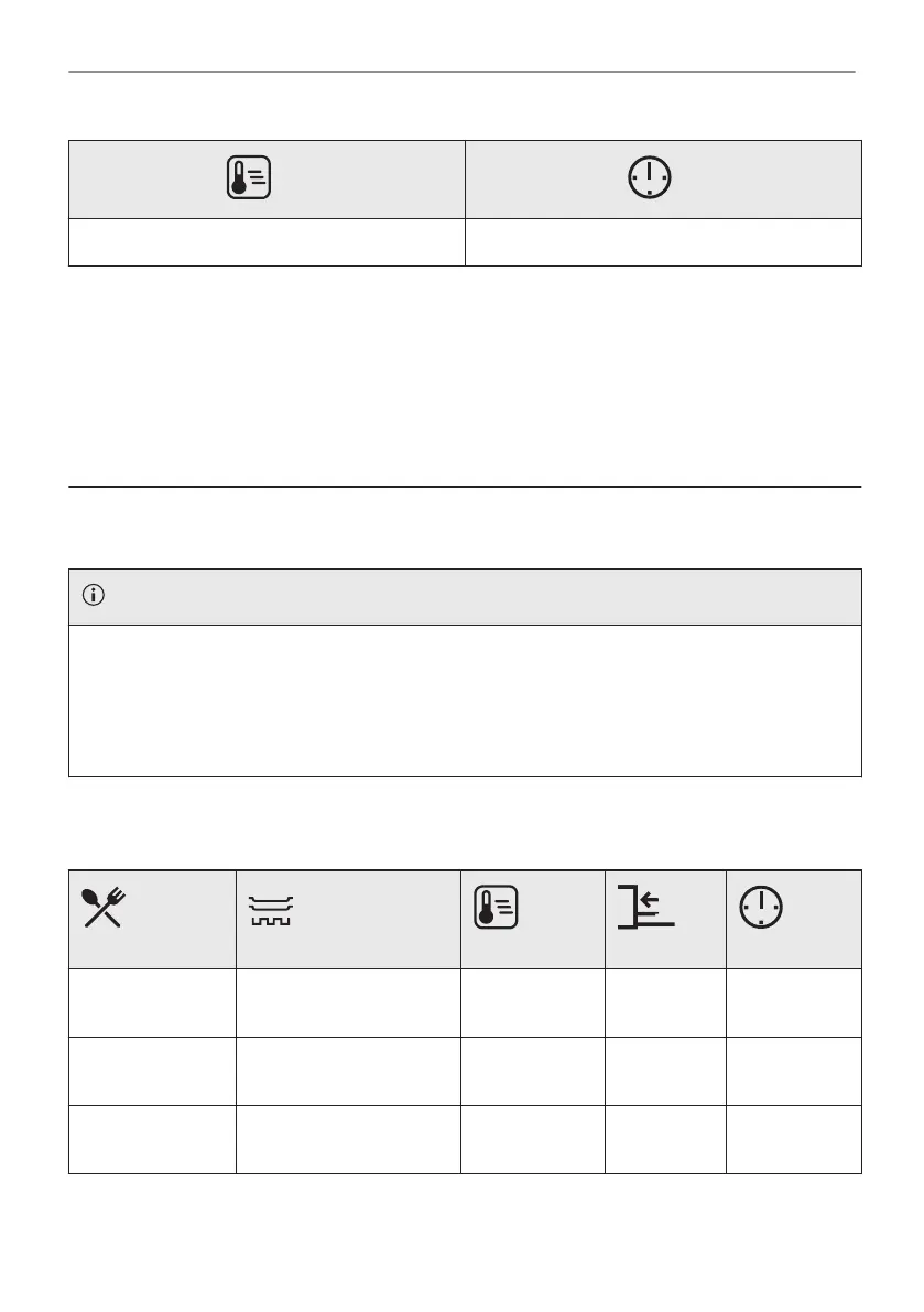 The temperature and cooking times in the tables are guidelines only. They depend on the recipes