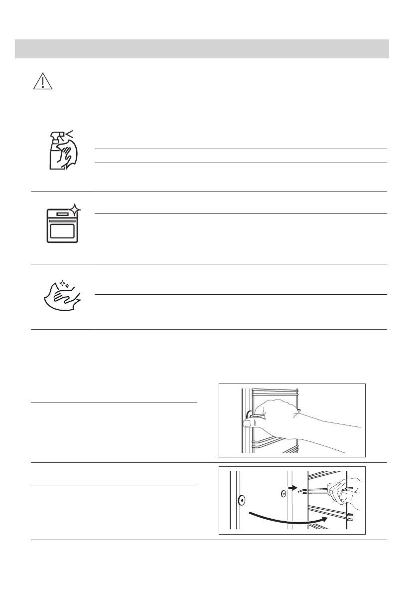 Išimkite lentynų atramas ir išvalykite orkaitę.
