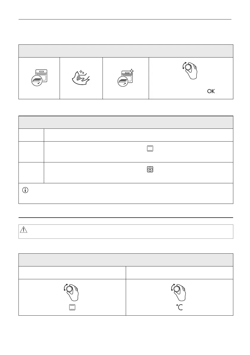 The oven can emit an odour and smoke during preheating. Make sure that the room is ventila‐
