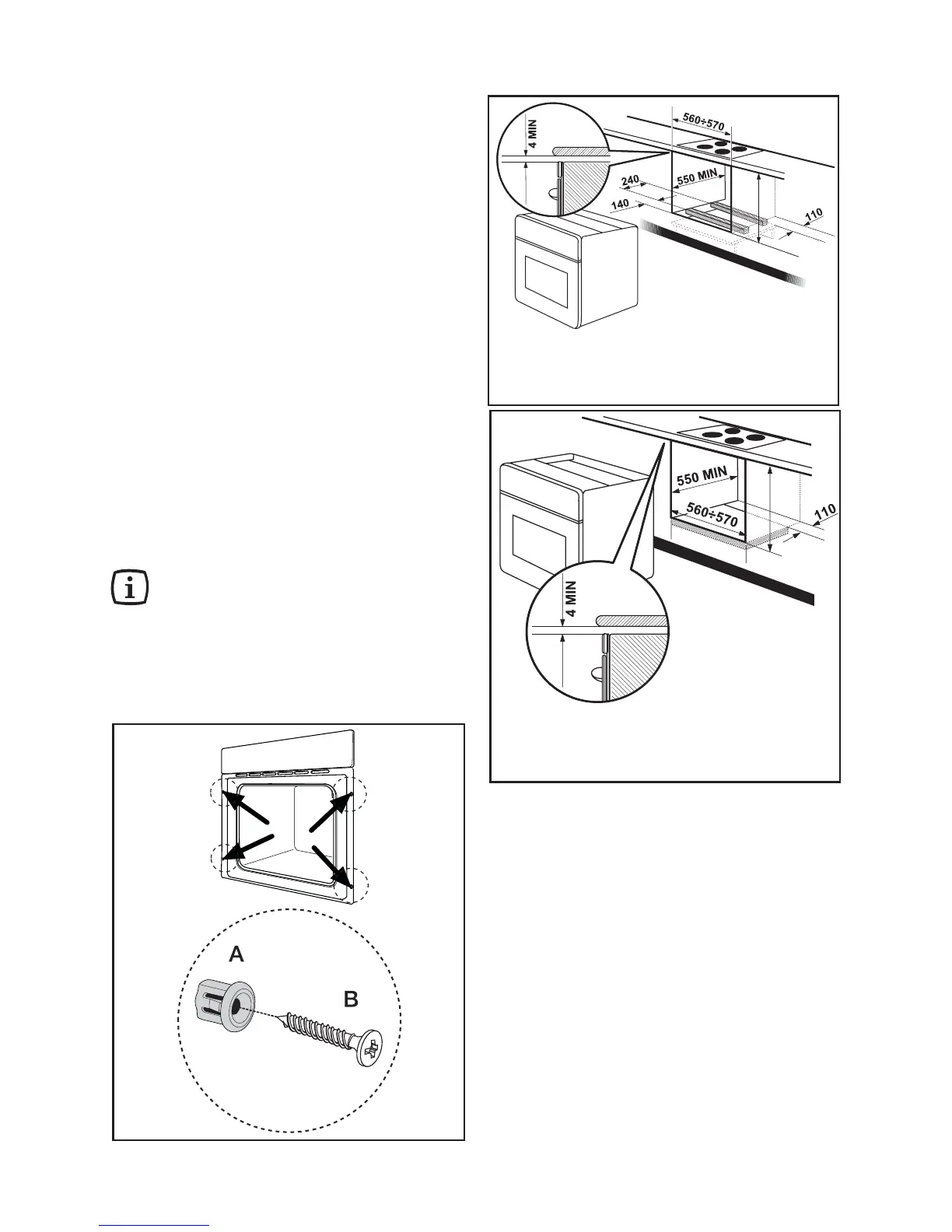 - fasten the oven to the cabinet placing